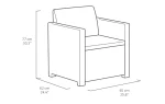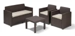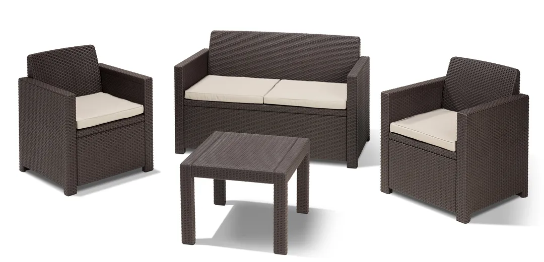 Az Alabama egy rattan stílusra emlékeztető elegáns bútor szett két fotellel, egy kétszemélyes kanapéval és egy négyszögletes asztallal. Ez a bútor szett kellemessé teszi a kertben vagy a teraszon töltött nyári napokat. A termékekhez stílusos, a szetthez passzoló színű puha párnákat mellékelünk. A könnyű és stabil szerkezetű bútorok tisztítása nagyon egyszerű. A szett ellenálló a külső sérülésekkel és az időjárás viszontagságaival, illetve az UV sugárzással szemben is. Lágy színekben kapható.