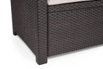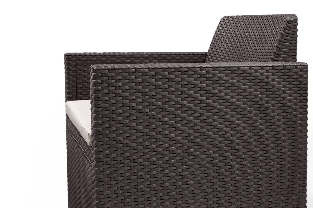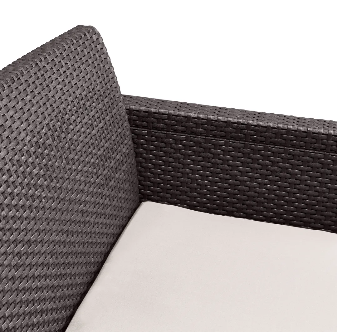 Az Alabama egy rattan stílusra emlékeztető elegáns bútor szett két fotellel, egy kétszemélyes kanapéval és egy négyszögletes asztallal. Ez a bútor szett kellemessé teszi a kertben vagy a teraszon töltött nyári napokat. A termékekhez stílusos, a szetthez passzoló színű puha párnákat mellékelünk. A könnyű és stabil szerkezetű bútorok tisztítása nagyon egyszerű. A szett ellenálló a külső sérülésekkel és az időjárás viszontagságaival, illetve az UV sugárzással szemben is. Lágy színekben kapható.