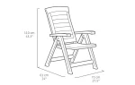 Az Aruba a stabil szerkezet és a kényelmes használat tökéletes ötvözete. A megfelelően profilozott háttámla rendkívüli kényelmet biztosít az ülés során. Összecsukható, dönthető háttámlájú szék. Tartósság és az időjárás viszontagságainak, valamint az UV sugárzásnak való ellenállás jellemzi. Eredeti színekben kapható. Tisztítása egyszerű, elég hozzá egy mosószeres vízbe áztatott puha törlőkendő.