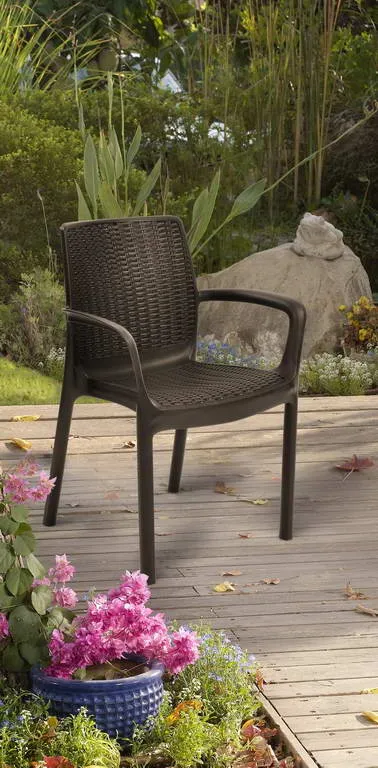 A Bali Mono egy univerzális, kartámaszos szék, amely a stabil szerkezetet és az elegáns kivitelezést egyesíti. A szék tökéletesen illik bármely kertbe, teraszra, erkélyre, de akár a beltérbe is. Szolid, tartós, az időjárás viszontagságainak, valamint az UV sugárzásnak ellenálló termék. Az ülőfelület és a háttámla fonott rattan hatású stílusa a termék további vizuális előnyét képezi. Lágy színekben kapható, könnyedén tisztítható egy mosószeres vízbe áztatott puha törlőkendő segítségével.