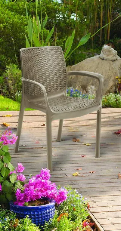 A Bali Mono egy univerzális, kartámaszos szék, amely a stabil szerkezetet és az elegáns kivitelezést egyesíti. A szék tökéletesen illik bármely kertbe, teraszra, erkélyre, de akár a beltérbe is. Szolid, tartós, az időjárás viszontagságainak, valamint az UV sugárzásnak ellenálló termék. Az ülőfelület és a háttámla fonott rattan hatású stílusa a termék további vizuális előnyét képezi. Lágy színekben kapható, könnyedén tisztítható egy mosószeres vízbe áztatott puha törlőkendő segítségével.