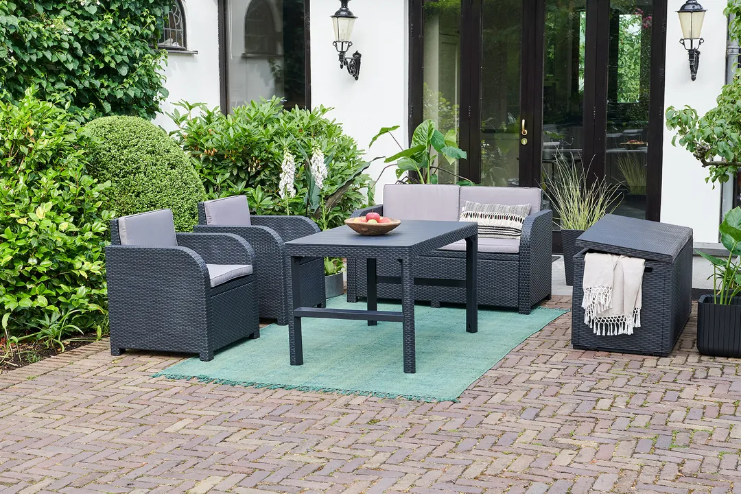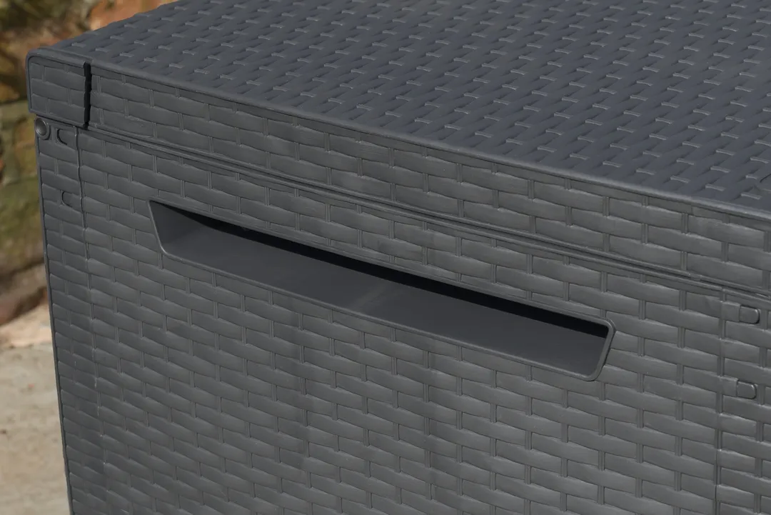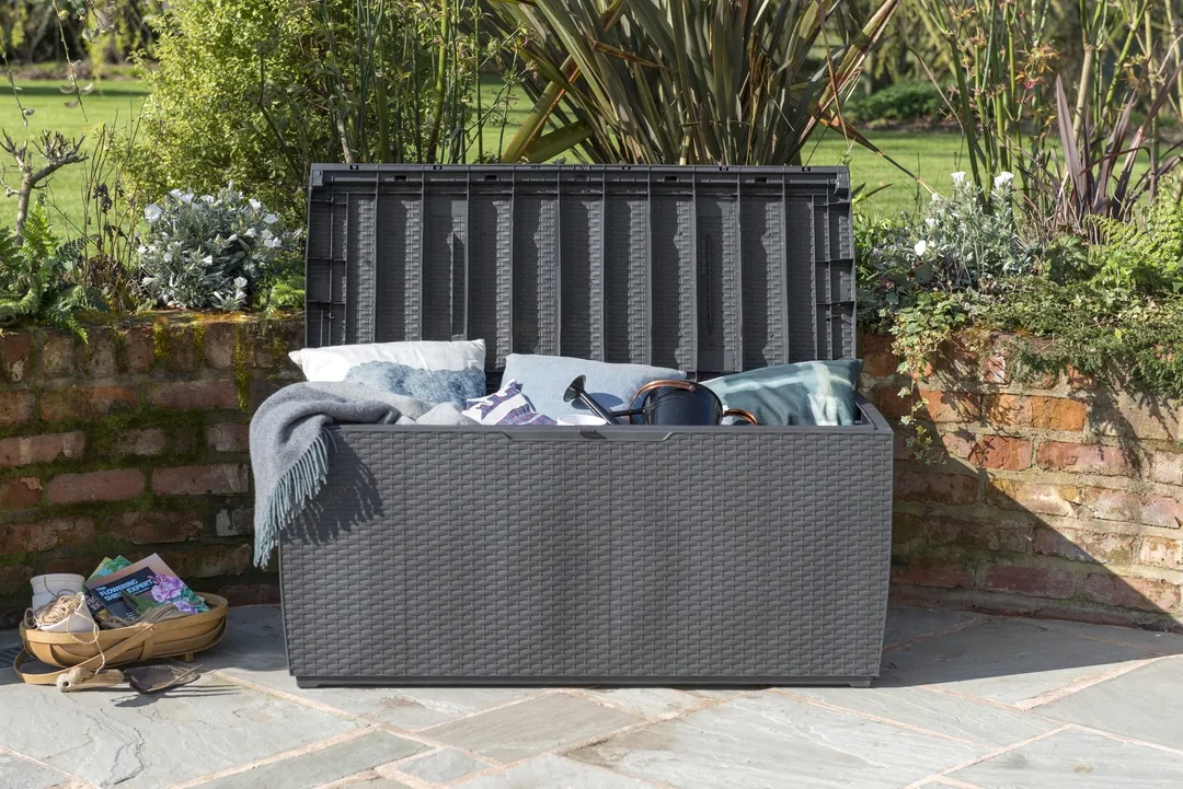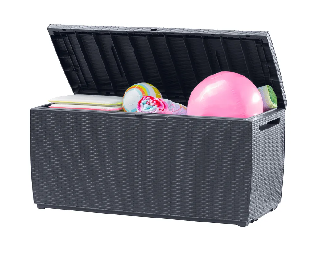 A Borneo egy funkcionális tároló különböző kerti munkálatokhoz szükséges tartozékok tárolására. Gond nélkül elférnek benne például a kézreálló szerszámok. A tároló magas minőségű, az időjárás viszontagságainak és a légköri tényezők káros hatásainak ellenálló anyagokból készült. A termék további előnye a használatot megkönnyítő fedélnyitó mechanizmus. Szilárdságának és masszív kialakításának köszönhetően a tároló ülőhelyként is szolgálhat 2 felnőtt számára.