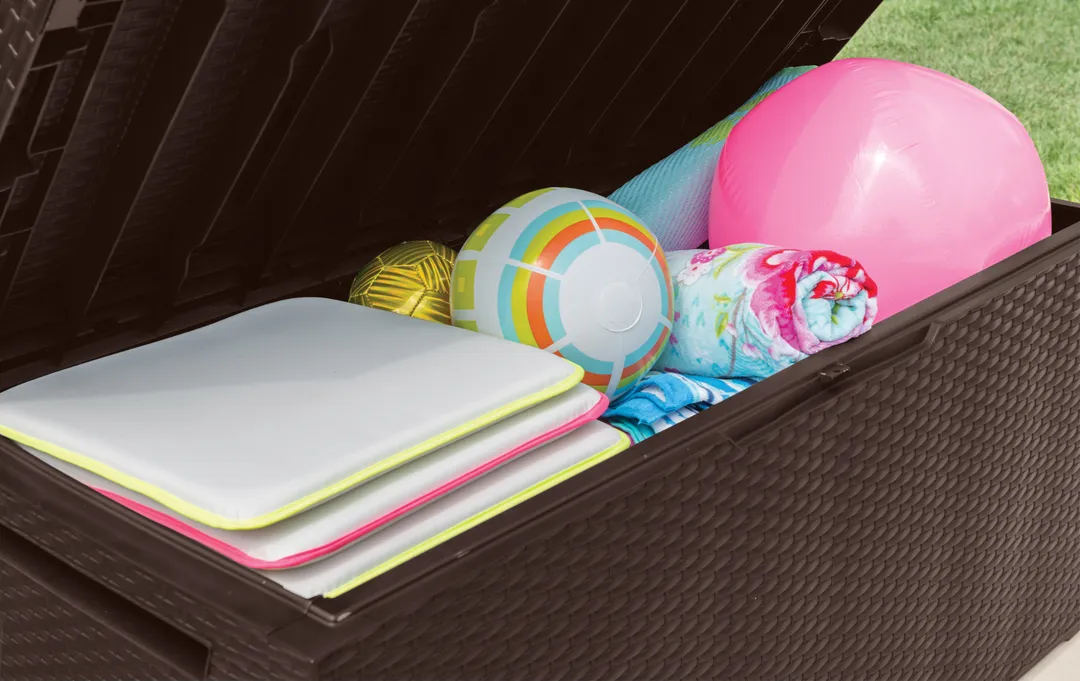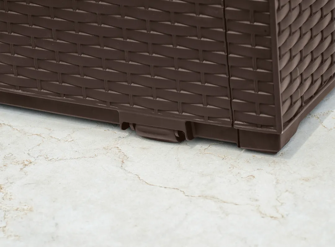 A 270L-es Capri tárolót a természetes rattan fonás inspirálta, időtálló formatervezése mindenki tetszését elnyeri, aki stílusos kertben gondolkozik. A kedvezőtlen időjárási feltételeknek ellenálló magas minőségű műanyag rendkívül tartós és garantálja a kerti szerszámok, játékok és egyéb kerti tartozékok biztonságos tárolását.