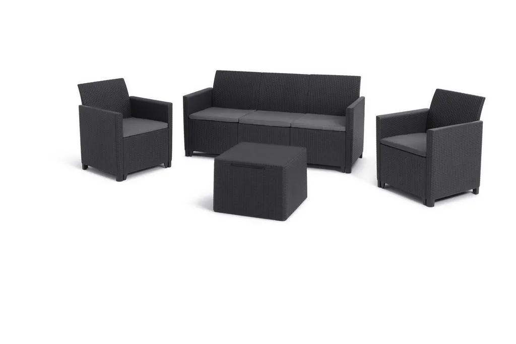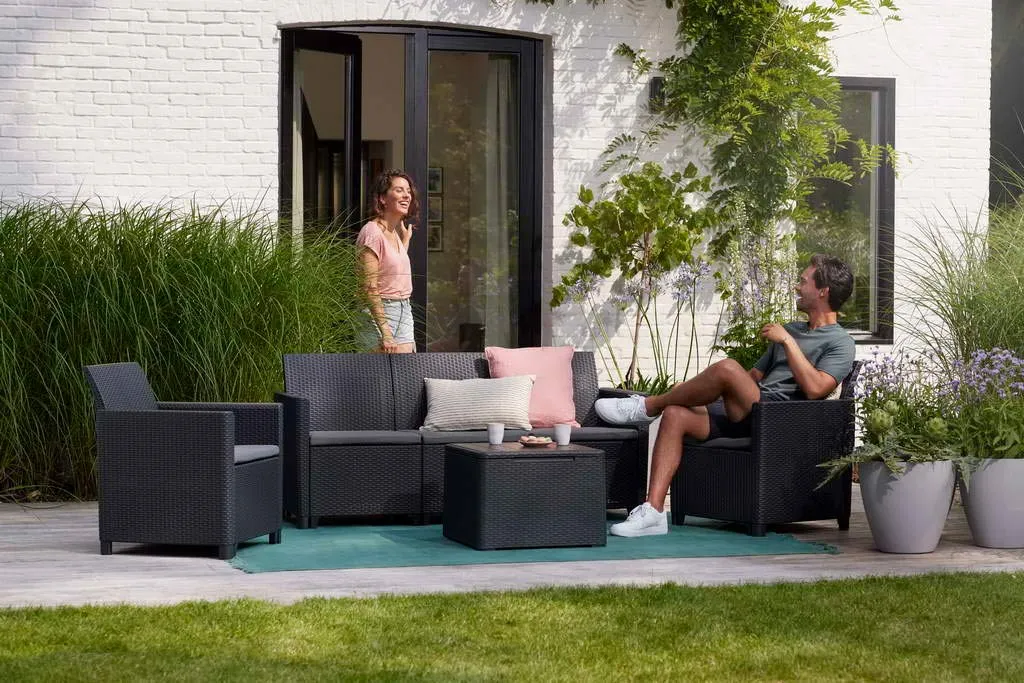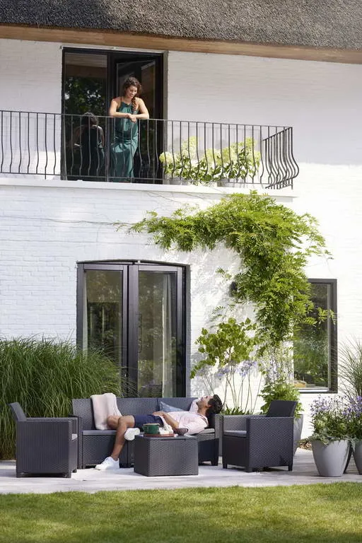 Hozd ki a legtöbbet kerted, vagy teraszod szabad tereiből a Claire 5 személyes kerti bútor szettjével. Jöjjetek össze a családdal és a barátaiddal, és élvezzétek együtt a pompás nyári estéket. A komfortos ülések, illetve a csomagban megtalálható párnák garantálják a legmagasabb szintű kényelmet. Sima karfáival és kényelmes háttámláival a Claire szett tökéletesen kielégíti a vásárlók igényeit. A termék kétségtelen előnye, hogy olyan anyagokból készül, amelyek nem igényelnek különleges karbantartást és ellenállnak a kedvezőtlen időjárási viszonyoknak. Szerszámok használata nélkül összeszerelhető, így bútoraidat már 30 perccel az összerakás megkezdése után használhatod! A szett klasszikus Orlando, vagy egy tároló funkcióval rendelkező asztallal kapható.