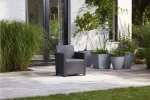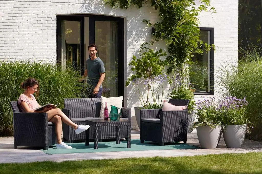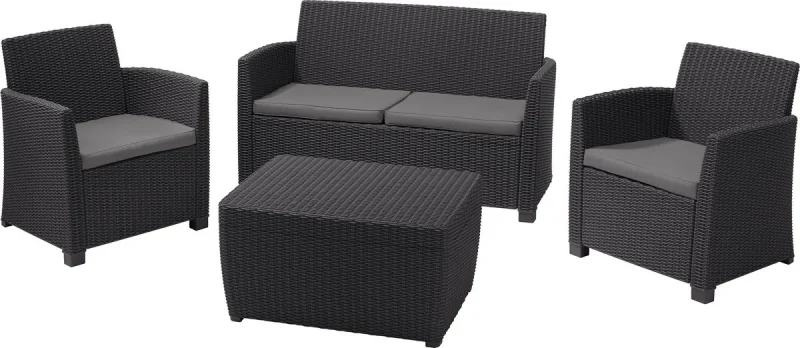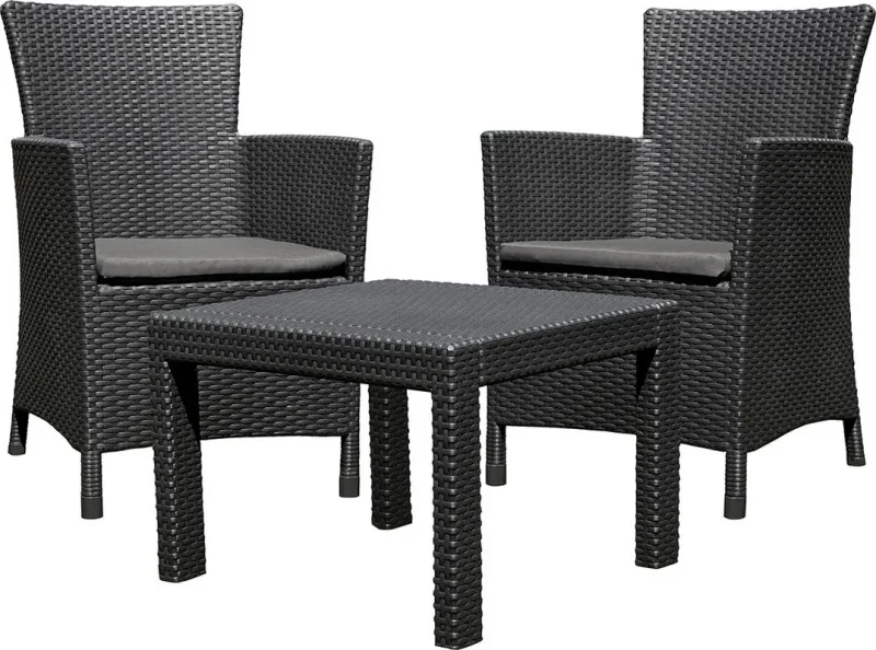 Alakítsd át a teraszod, erkélyed vagy kerted a Keter kényelmes Claire bútor szettjével. A szetthez mellékelt párnák extra kényelmet nyújtanak a kikapcsolódás pillanataiban. A Claire szabadidő szett minden igényt kielégít, így a szabadban bárhol elhelyezve képes megfelelő kényelmet nyújtani. A termékek fenntartható, karbantartást nem igénylő, időjárásálló anyagokból készültek. Szerszámok használata nélkül összeszerelhetők, így a bútorok már 20 perccel az összerakás megkezdése után használhatók! Opcióként klasszikus Orlando, vagy tároló funkcióval rendelkező asztallal is kapható.