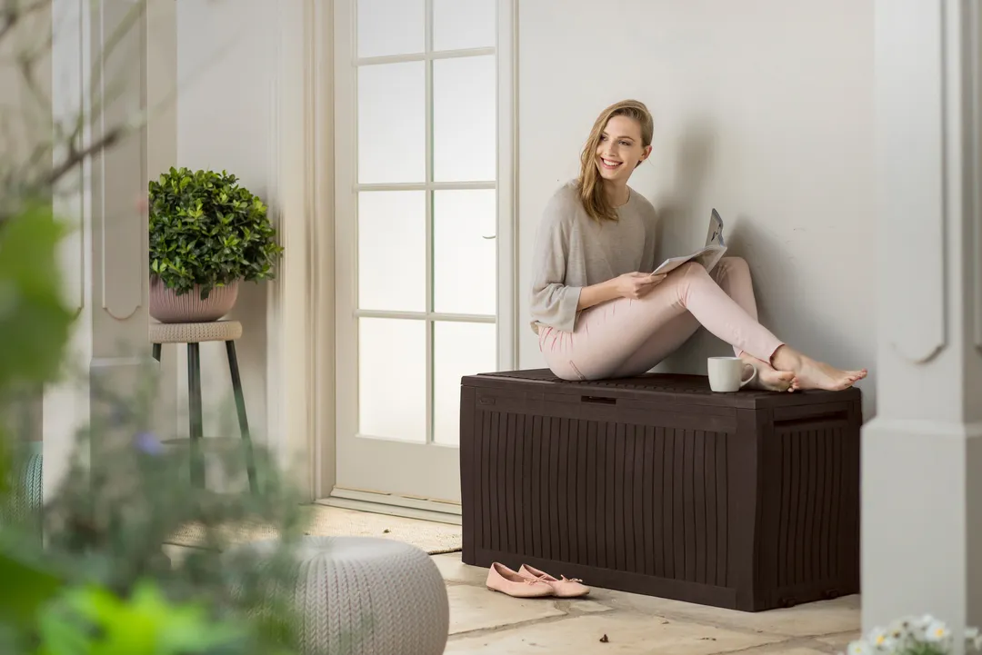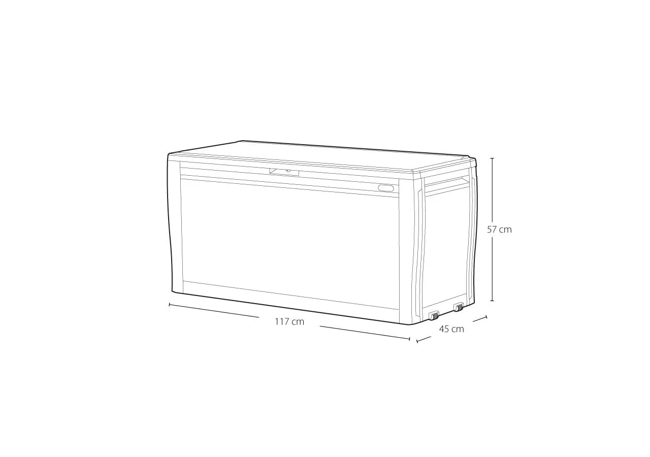 A Comfy 270L-es tárolóval mind a munka, mind a pihenés kényelmesebbé válik a kertben. A tárolónak köszönhetően minden kerti szerszám kézközelben lesz. A hagyományos formatervezés és az univerzális kinézet is hozzájárul, hogy a tároló tökéletesen mutat bármely kertben. A termék további előnyét képezik a felszerelhető görgők, amelyek még a legjobban megpakolt ládák mozgatását is jelentősen megkönnyítik.