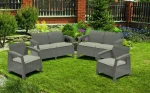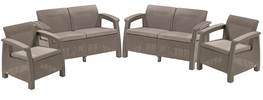 A Corfu Rest egy nádfonású textúrára emlékeztető kerti bútor szett, amely kettő fotelből és kettő kétszemélyes kanapéból áll. Tökéletes nagyobb terek stílusos berendezéséhez. A bútorok jellemzője a tartósság és a kedvezőtlen időjárási viszonyoknak, valamint az UV sugárzásnak való ellenállás. A Corfu Rest elegáns színpalettában kapható, könnyen összeszerelhető és tisztítható.