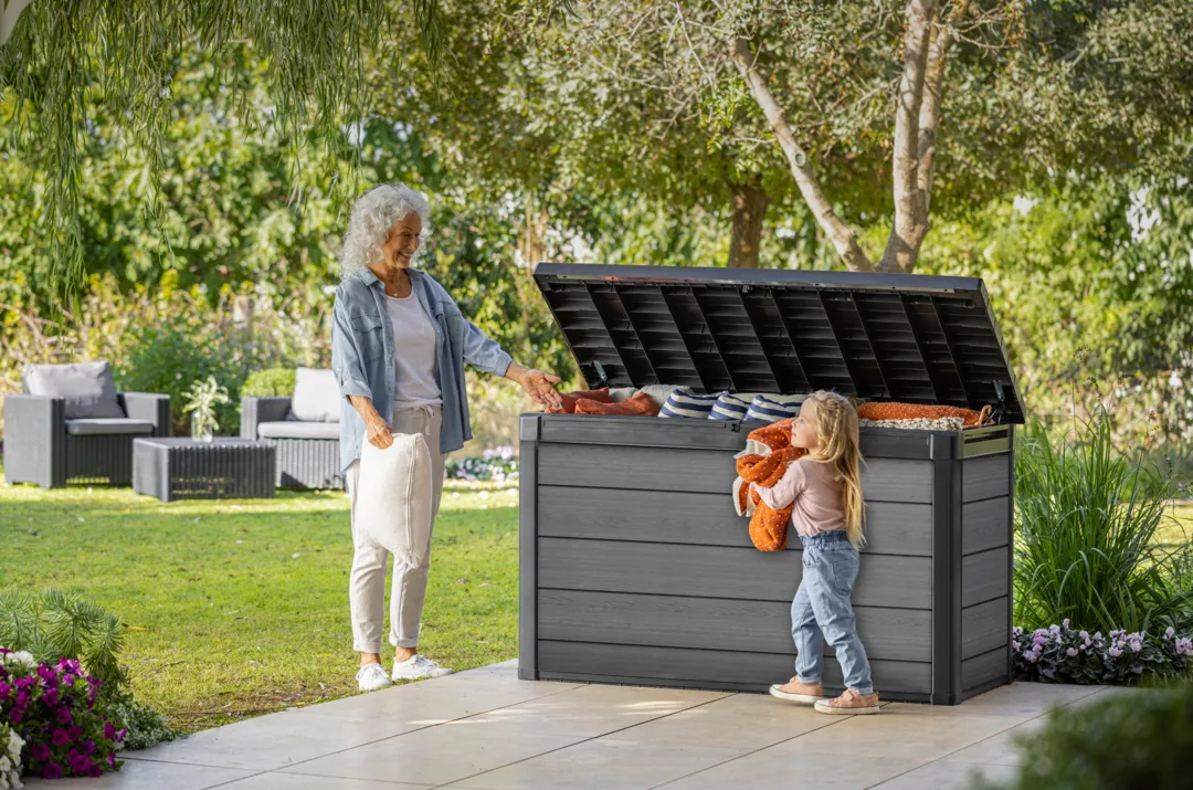 Újítsd meg kültéri teredet a Cortina Boxokkal. Az Evotech kompozitból készült tárolóeszköz rendkívül erős, minden időjárásnak ellenáll és UV-védett. Mondj búcsút a málló és rozsdásodásodó tároló megoldásoknak – a Cortina Boxok tartósak, karbantartásmentesek. A hidraulikus teleszkópok könnyedén kinyitják a doboz zárható fedelét, így egyszerűen hozzáférhetővé válik a 380 / 570 / 757 literes térfogatú belseje. Tökéletes minden otthoni és kerti kiegészítő tárolására. A Cortina Boxok segítenek letisztult és rendezett életteret teremteni.