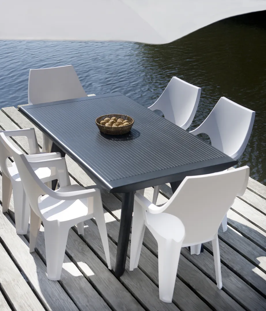 A jellegzetes formájú, enyhén lekerekített háttámlával és áramvonalas kartámasszal felszerelt Dante szék a modern dizájn és a kényelem ötvözete. A gondosan megtervezett forma lehetővé teszi a székek egymásra helyezését, ami segít helyet megtakarítani és könnyebbé teszi a tárolásukat. A Dante széket az időjárás viszontagságaival, az UV sugárzással, valamint a sérülésekkel szembeni ellenállás jellemzi. Tisztítása egyszerű, elegendő hozzá csupán egy mosószeres vízbe áztatott puha törlőkendő.