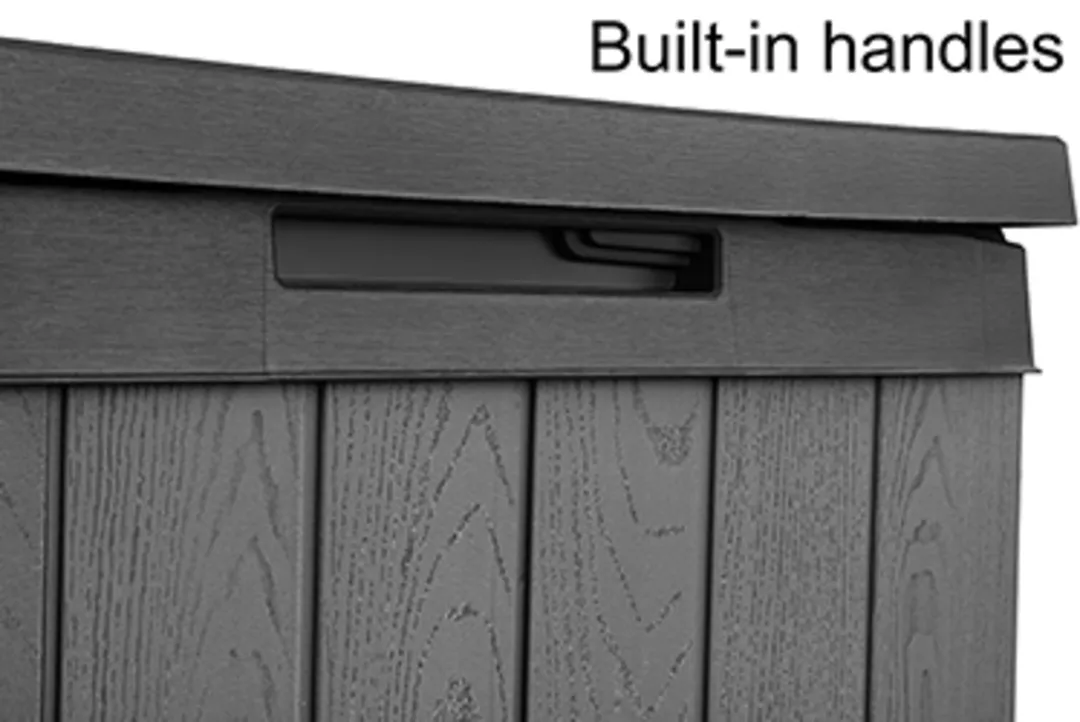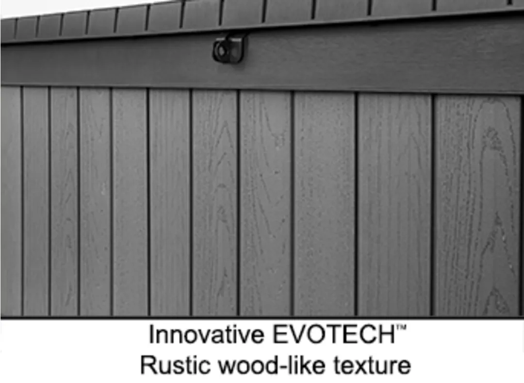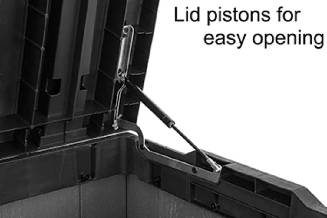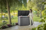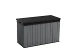 A Darwin kerti tároló az erős kialakítást ötvözi az elegáns megjelenéssel. Innovatív EVOTECH™ alapanyagból készül, amely ellenáll az időjárási viszontagságoknak és az UV-sugárzásnak. A fához hasonló rusztikus textúra és a stílusos, kétszínű keret fokozza a termék esztétikai előnyeit. Jelentős tároló kapacitásának köszönhetően kényelmesen elférnek benne a kültéri párnák és egyéb kiegészítők, így a terasz, az udvar, vagy a kert mindig rendben tartható. A fedélnyitást megkönnyítő mechanizmus a termék vitathatatlan előnye, fedele zárható. trapabíró kialakításának köszönhetően a tároló láda két személy ülőhelyeként is használható. Három méretben kapható: 380L, 570L, 622L.