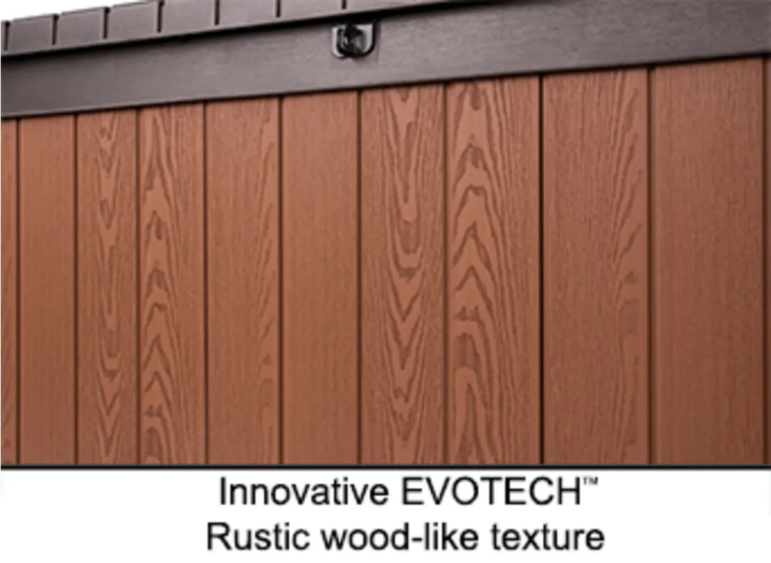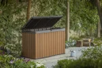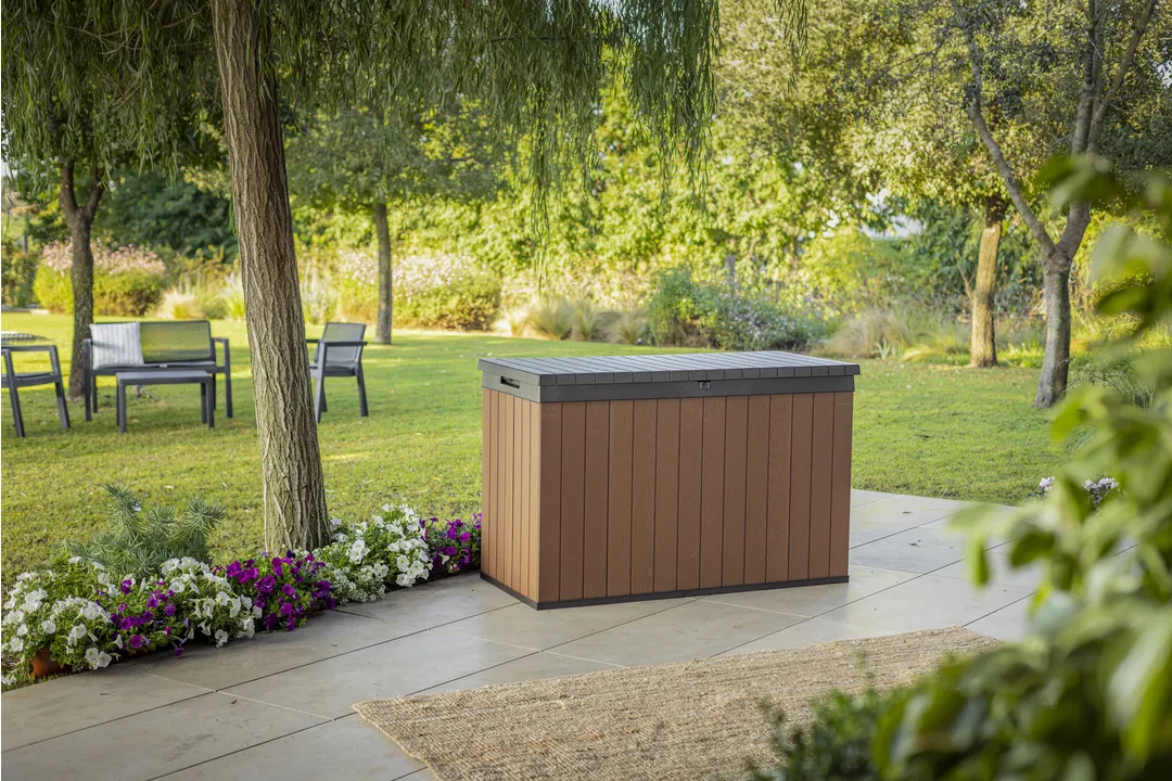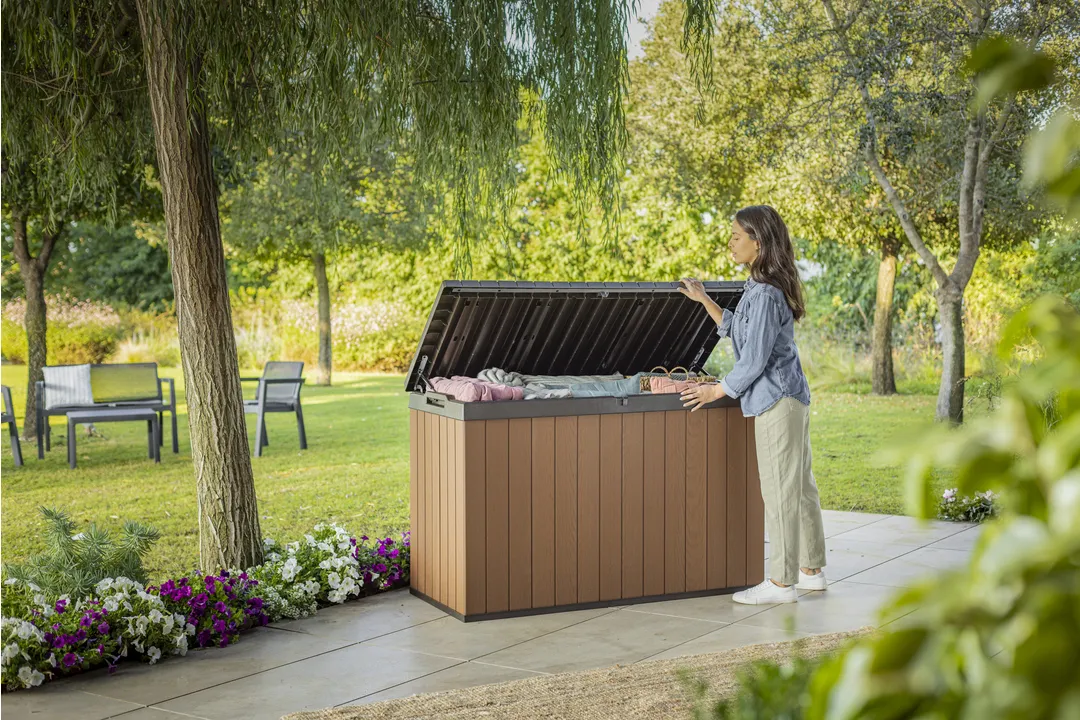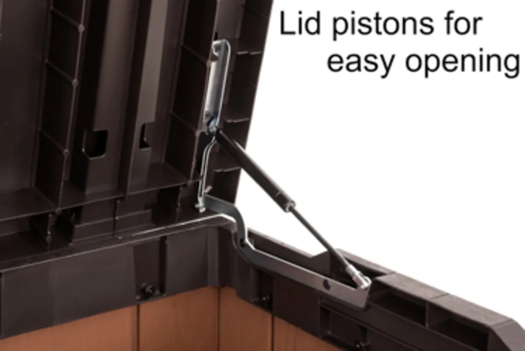 A Darwin kerti tároló az erős kialakítást ötvözi az elegáns megjelenéssel. Innovatív EVOTECH™ alapanyagból készül, amely ellenáll az időjárási viszontagságoknak és az UV-sugárzásnak. A fához hasonló rusztikus textúra és a stílusos, kétszínű keret fokozza a termék esztétikai előnyeit. Jelentős tároló kapacitásának köszönhetően kényelmesen elférnek benne a kültéri párnák és egyéb kiegészítők, így a terasz, az udvar, vagy a kert mindig rendben tartható. A fedélnyitást megkönnyítő mechanizmus a termék vitathatatlan előnye, fedele zárható. trapabíró kialakításának köszönhetően a tároló láda két személy ülőhelyeként is használható. Három méretben kapható: 380L, 570L, 622L.