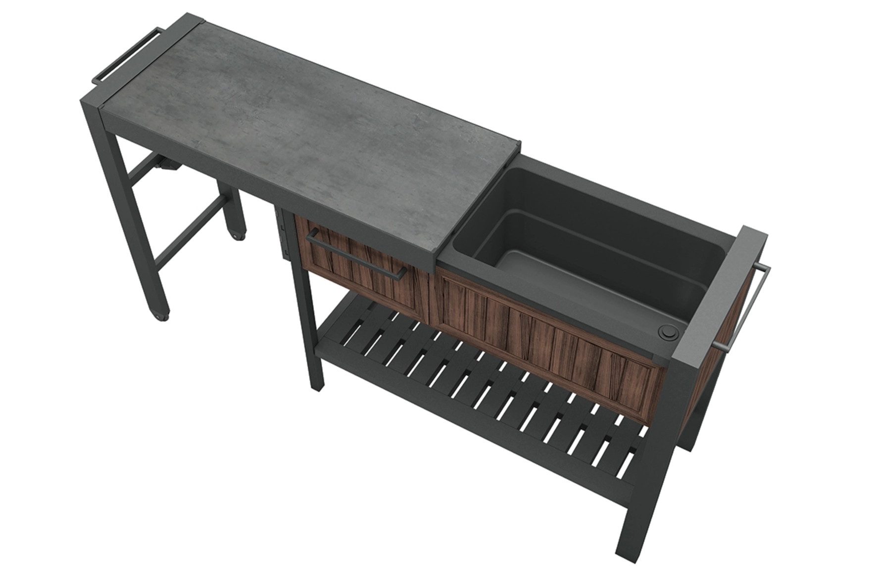 Modern, kompakt kialakítása zökkenőmentesen illeszkedik bármilyen térbe, teraszra vagy kertbe, a rejtett kerekek pedig könnyű mozgatást biztosítanak. A praktikus felső fiók és a belső tárolórekesz kényelmes tárolást kínál a legszükségesebb dolgok számára, biztosítva, hogy minden mindig kéznél legyen.
