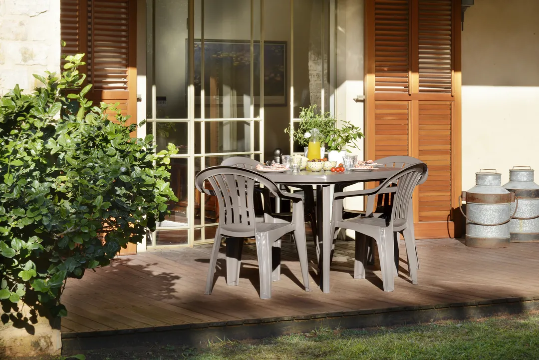 Egyszerű forma, kényelmes használat és könnyű összeszerelhetőség – ezek a legfőbb előnyei az Elise kerti asztalnak. Kiváló a családi étkezésekhez vagy közös időtöltéshez az ismerősökkel. A széles, ovális asztallapnál kényelmesen elfér 6 felnőtt személy. Tisztítása egyszerű, elég hozzá egy mosószeres vízbe áztatott puha törlőkendő. Gazdag színválasztékban kapható.