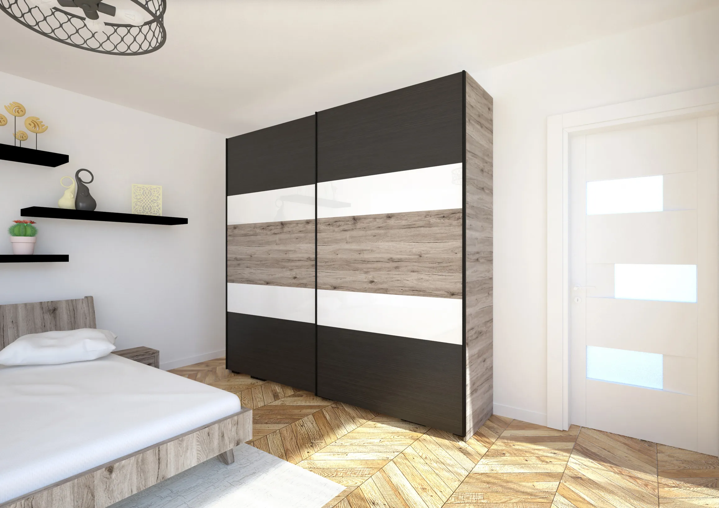 A Főnix gardrób magasfényű bútorlap betéttel is kapható, még tovább növelve ezzel a variációs lehetőségek számát. 3 bútorlapos és 2 magasfényű betét alkotja az ajtót, melyek tetszőlegesen variálhatóak. Magasfényű bútorlap betét színek: fehér, beige, szürke és fekete. Oldalfal és ajtó színek: rusztik fehér, fehér tölgy, justus tölgy, sonoma tölgy, artisan tölgy, viking tölgy, katthult, san remo, canyon tölgy, sötét justus tölgy, matt sötétszürke, nero, matt fekete.
