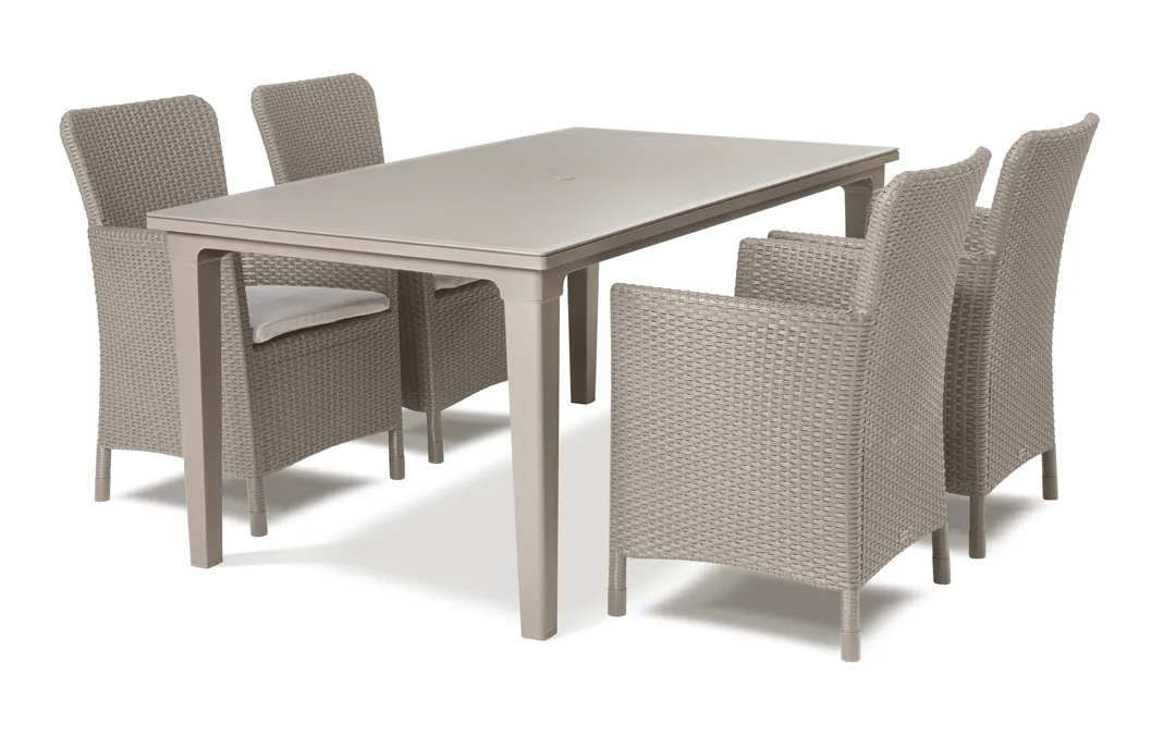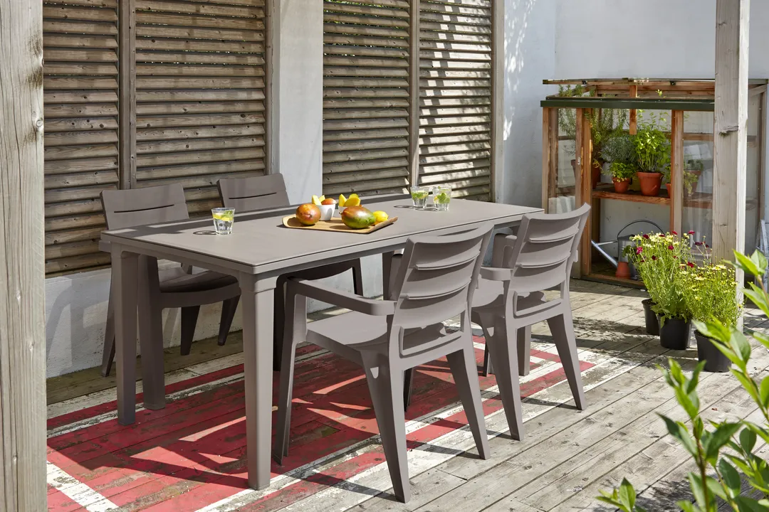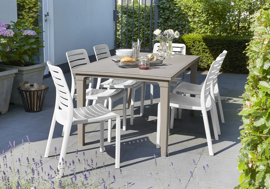 A keskeny formájú Futura asztal mindenki tetszését elnyeri, aki értékeli a stílust és az eleganciát. A termék egyesíti a fából készült asztalok megjelenést a műanyag elemek praktikus felhasználásából eredő előnyökkel. A termék összeszerelése könnyű, tisztítása egyszerű. Az asztal ellenáll a sérüléseknek, valamint az időjárás hosszantartó viszontagságainak is.