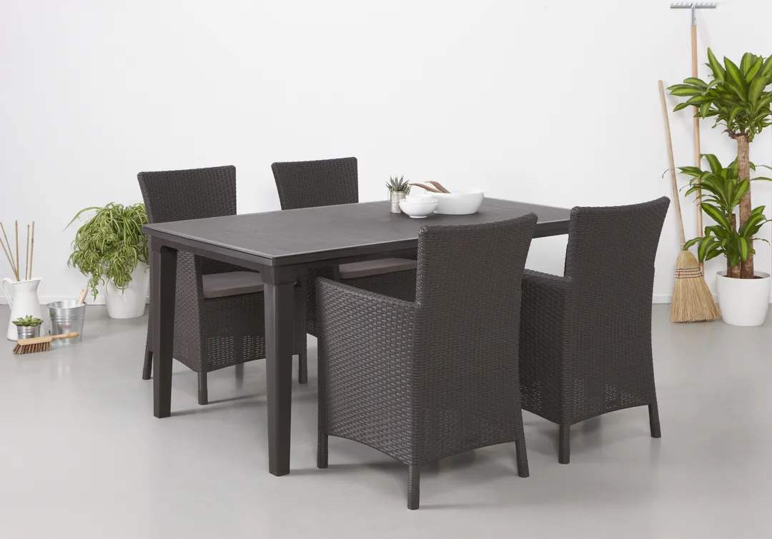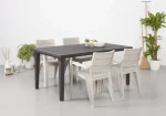 A keskeny formájú Futura asztal mindenki tetszését elnyeri, aki értékeli a stílust és az eleganciát. A termék egyesíti a fából készült asztalok megjelenést a műanyag elemek praktikus felhasználásából eredő előnyökkel. A termék összeszerelése könnyű, tisztítása egyszerű. Az asztal ellenáll a sérüléseknek, valamint az időjárás hosszantartó viszontagságainak is.