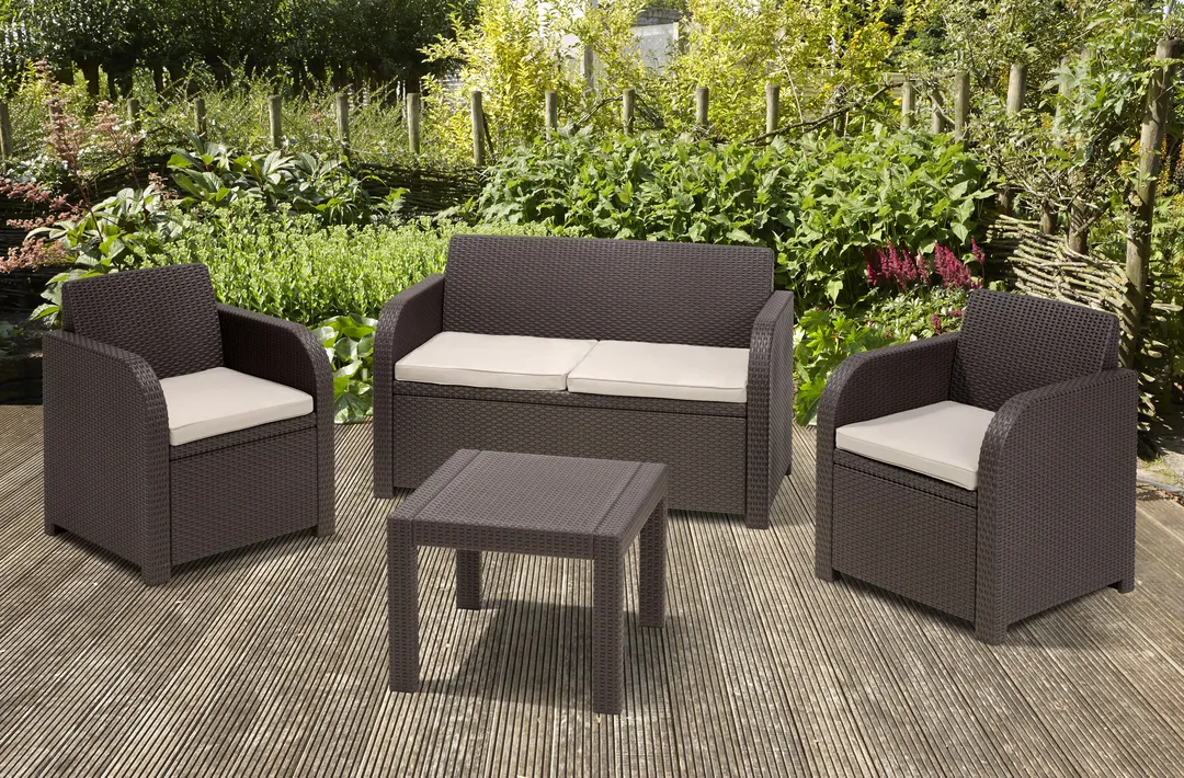A Georgia rattan hatású bútor szettet két fotel, egy kétszemélyes kanapé és egy négyszögletes asztal alkotja. A bútor szett ideálisan beleillik minden kertbe, ahol ideális helyet teremt a pihenéshez. A termékekhez stílusos, a szetthez passzoló színű puha párnákat mellékelünk. Nagyon egyszerű a tisztításuk. A könnyű és stabil szerkezetű bútorok tisztítása nagyon egyszerű. A szett ellenálló a külső sérülésekkel és az időjárás viszontagságaival, illetve az UV sugárzással szemben is.