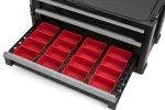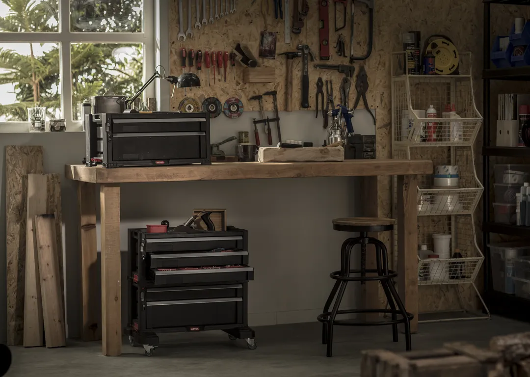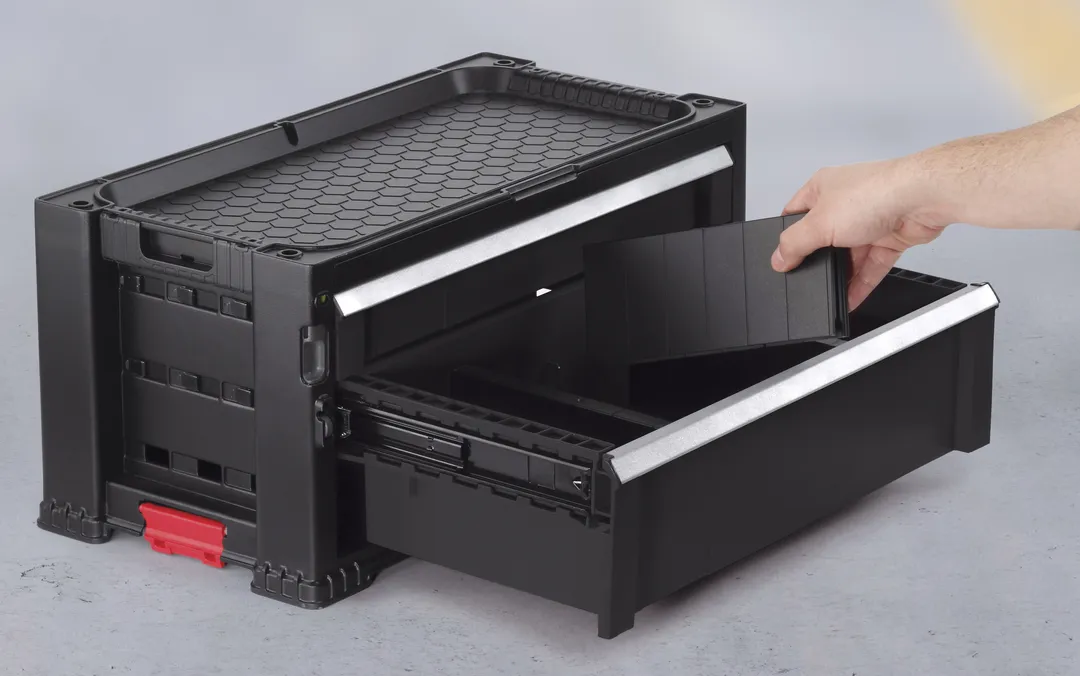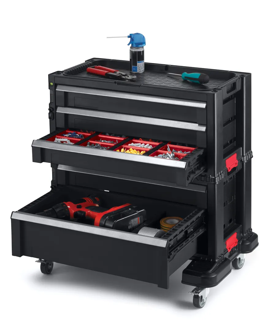 Sokoldalú, 5 fiókos kerekes tároló. Ez a tágas tároló rengeteg hellyel rendelkezik, ami tökéletes vélasztássá teszi a profik és a hobbi-barkácsolók számára egyaránt. Forgó kerekei segítségével könnyedén mozgatható a műhelyben.