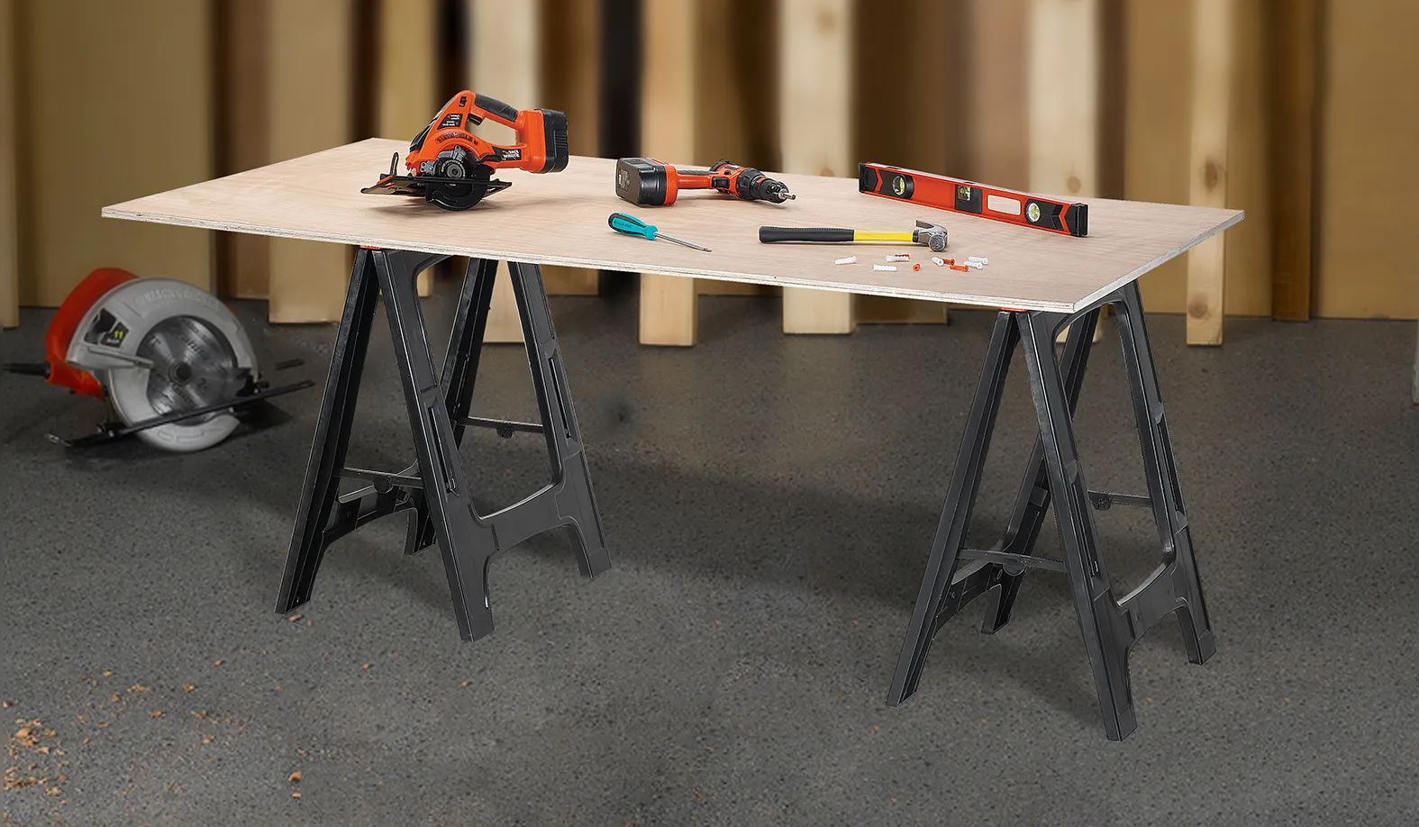 A 23″ fűrészbak szett ideális választás profiknak és hobbi- barkácsolóknak egyaránt, akik szeretnék megkönnyíteni a fával való munkát. A fűrészbakok beépített V-horonnyal rendelkeznek, ami a helyén tartja a fákat. Gumi talpuknak köszönhetően rendkívül stabilak, minimálisra csökkentik az eldőlés kockázatát fűrészelés közben. Összecsukhatók, így kis helyen is tárolhatók, könnyű súlyuknak köszönhetően pedig könnyedén szállíthatók. Kombináltan 340 kg teherbírásúak.