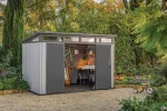 Az ARTISAN 11X7 szerszámos ház tökéletes választás mindazok számára, akik szeretik rendezetten tartani kertjük eszközeit és felszereléseit. Ez a modern és praktikus kerti ház tágas belső teret biztosít, amely ideális barkács asztal, sportfelszerelések, kerti gépek, vagy akár nagyobb tárgyak tárolására is.