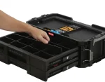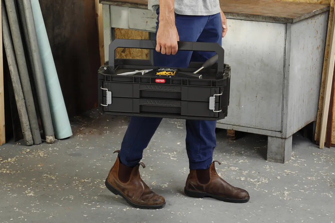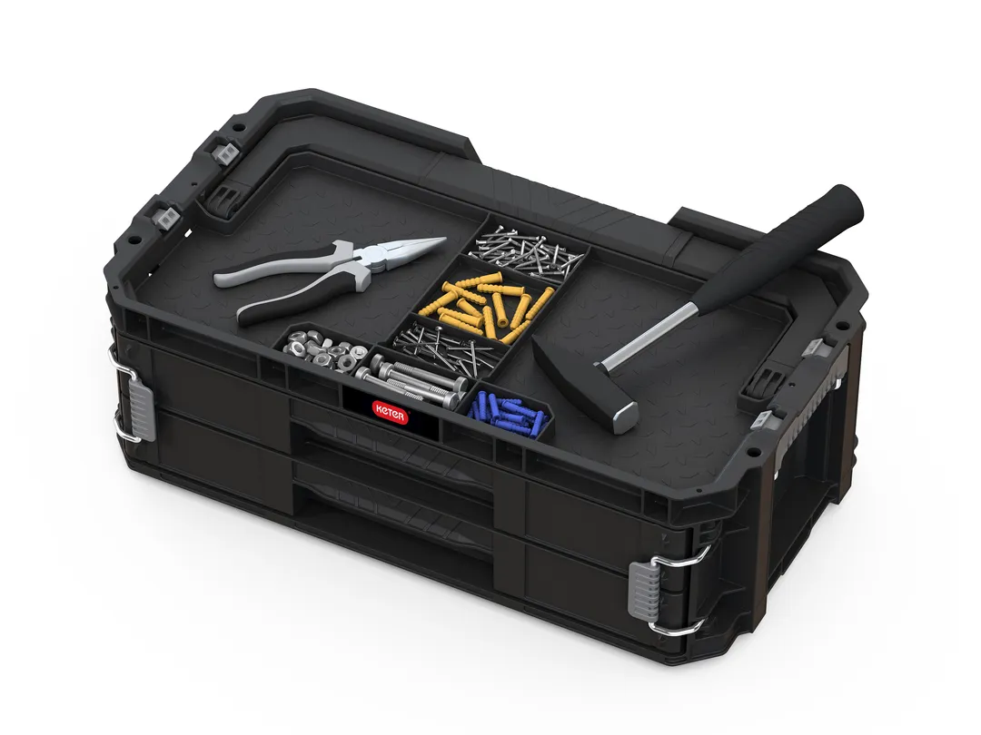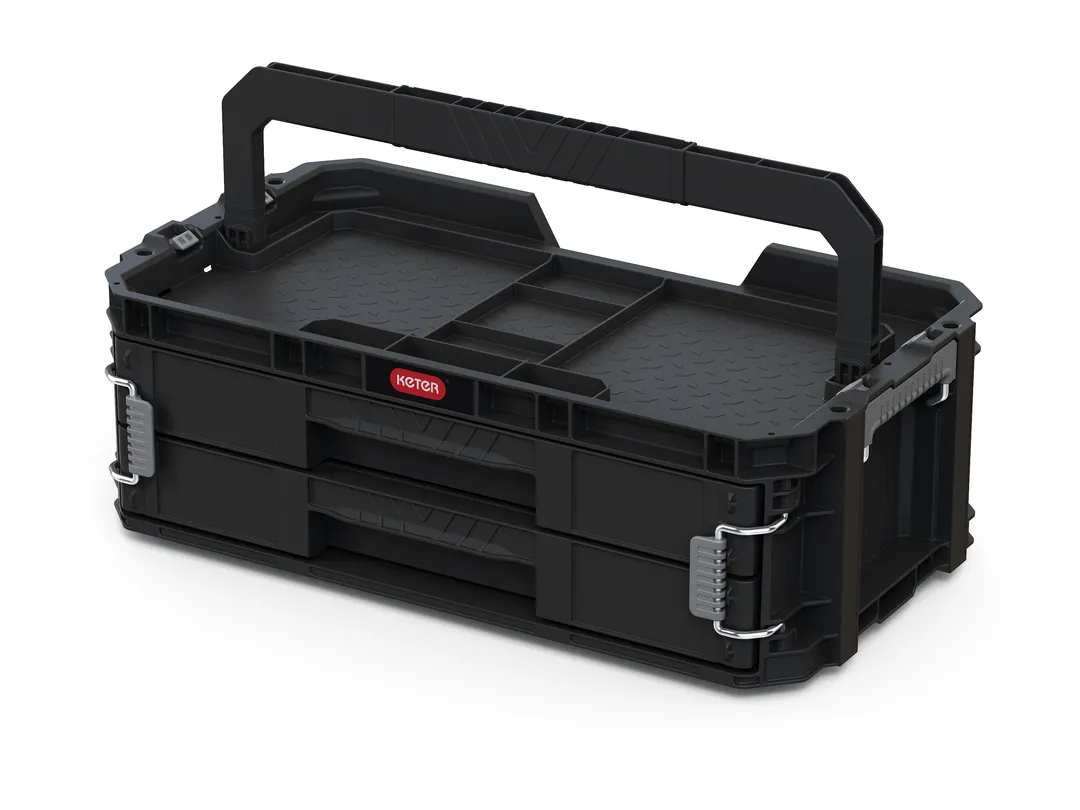 A Connect 2 fiókos rendszerező ideális megoldást kínál kisebb szerszámok, alkatrészek és barkács kiegészítők tárolására és rendszerezésére. Kiváló választás hobbi- és profi barkácsolók számára, 2 fiókja teljesen kihúzható, aminek köszönhetően egyszerűen és gyorsan hozzá lehet férni a szerszámokhoz. Kivehető elválasztói segítenek a legmegfelelőbb méretű rekeszek kialakításában. Tervezése során nagy hangsúlyt fektettek a könnyű szállításra, így egy kényelmes, hosszú fogantyú és fém csatok is helyet kaptak rajta, melyek megakadályozzák a véletlen kinyílást. A Connect gurulós szettel kompatibilis, ahhoz csatlakoztatva egy multifunkcionális, guruló szerszámosláda-szettet alkot.