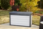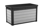 A DUOTECH™ technológiával készült 570L-es Denali tároló a természetes fa esztétikájának és a polipropilén műanyag tartóságának ötvözete. A kiváló minőségű műanyagból készült termék eredményesen védi a benne tárolt tárgyakat nedvességtől, szennyeződésektől és az UV sugárzástól. A fedélnyitást megkönnyítő mechanizmus a termék vitathatatlan előnye. A letisztult stílusának köszönhetően a tároló illik a bármilyen típusú kerthez, legyen az akár klasszikus, vagy modern. A termék ellenáll az időjárás viszontagságainak, könnyű a tisztítása.
