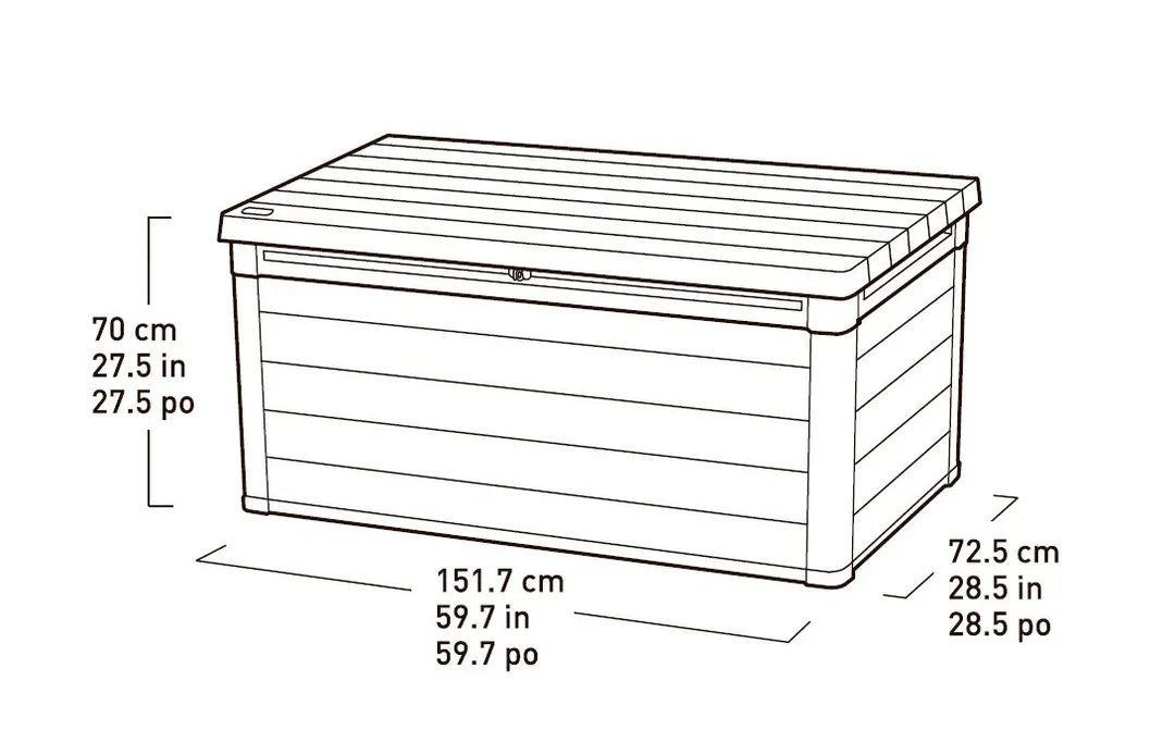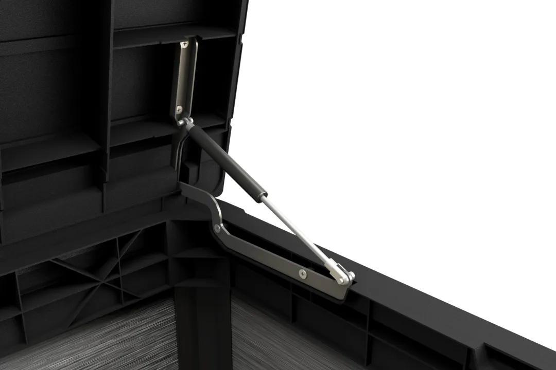 A DUOTECH™ technológiával készült 570L-es Denali tároló a természetes fa esztétikájának és a polipropilén műanyag tartóságának ötvözete. A kiváló minőségű műanyagból készült termék eredményesen védi a benne tárolt tárgyakat nedvességtől, szennyeződésektől és az UV sugárzástól. A fedélnyitást megkönnyítő mechanizmus a termék vitathatatlan előnye. A letisztult stílusának köszönhetően a tároló illik a bármilyen típusú kerthez, legyen az akár klasszikus, vagy modern. A termék ellenáll az időjárás viszontagságainak, könnyű a tisztítása.