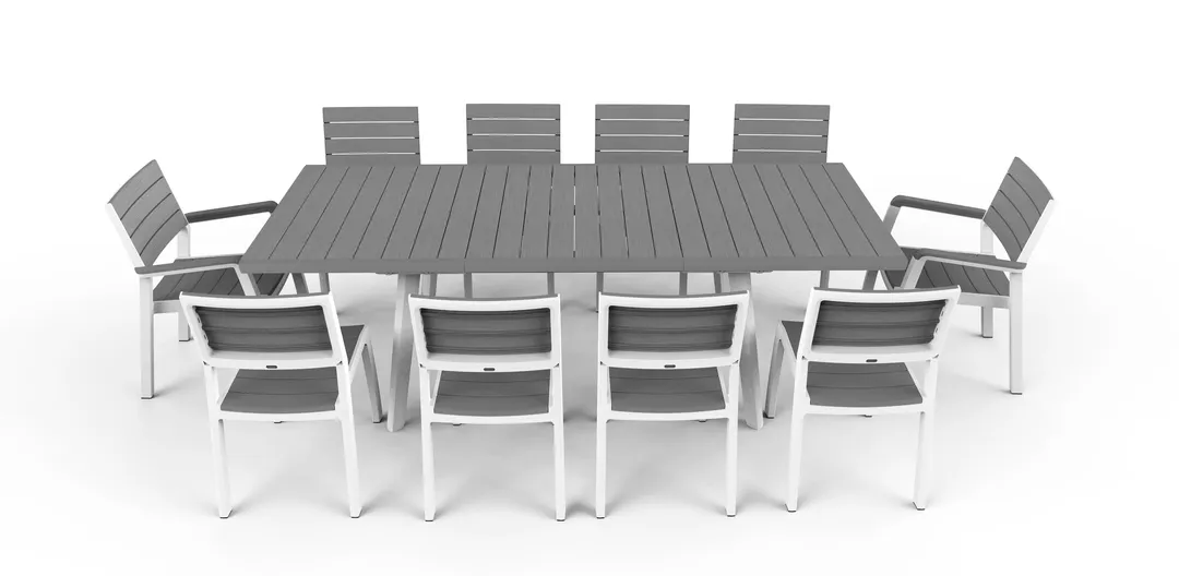A Harmony Extendable egy kinyitható asztal, különleges feladatokra. Termékajánlatunk legnagyobb asztala időtálló stílussal és maximális használati kényelemmel büszkélkedik. Természetes faanyagra emlékeztető kivételes felületkialakítás jellemzi. A bútor ideálisan kitölti a kert vagy a terasz nagyobb tereit, lehetővé téve nagyobb családi összejövetelek vagy baráti találkozók szervezését. A széles asztallap 12 fő kényelmes fogadására alkalmas. A terméket magas tartósság jellemzi, továbbá ellenáll az időjárás viszontagságainak és az UV sugárzásnak is. Nagyon egyszerű összeszerelni és könnyű tisztán tartani.