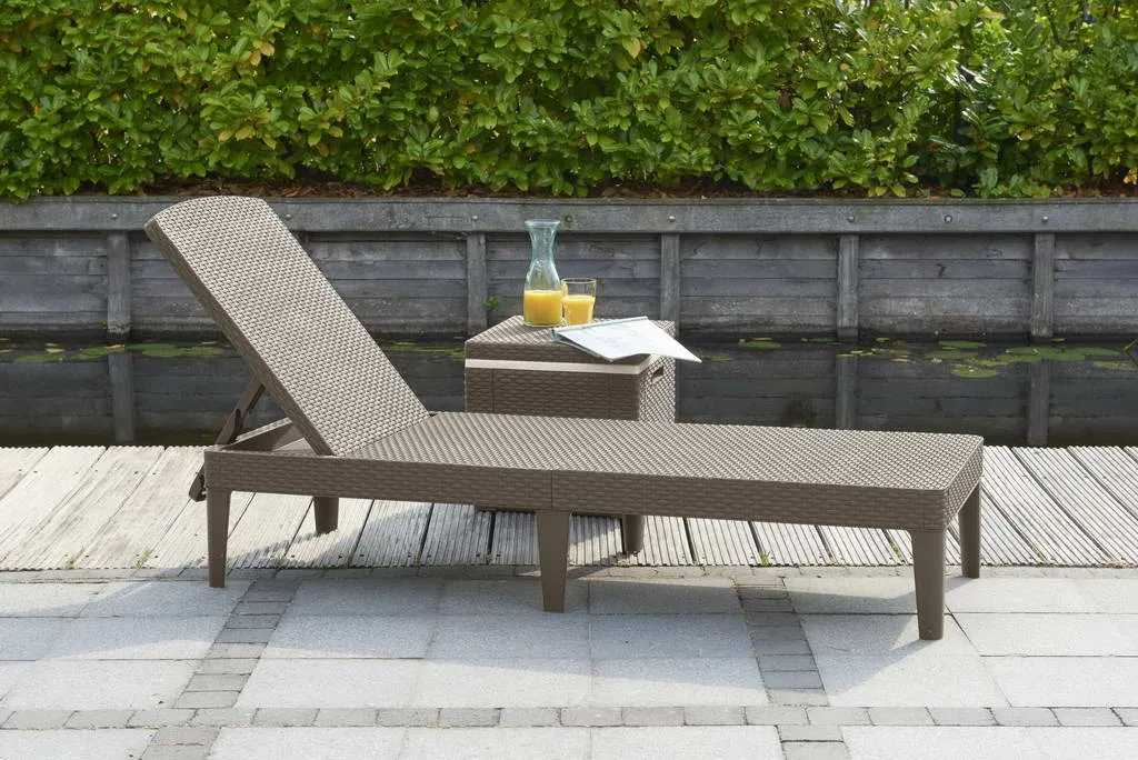 A funkcionális Jaipur nyugágy természetes rattanra emlékeztető felületkialakítással mindig kényelmes pihenést biztosít. Átgondolt szerkezetének köszönhetően a nyugágy összecsukható egy kisebb poggyász méreteire. A 4 pozícióban dönthető háttámla tovább növeli a termék kényelmét. Tisztítása egyszerű, elég hozzá egy mosószeres vízbe áztatott puha törlőkendő. Ellenáll a kedvezőtlen időjárási tényezők hatásának, valamint az UV sugárzásnak.