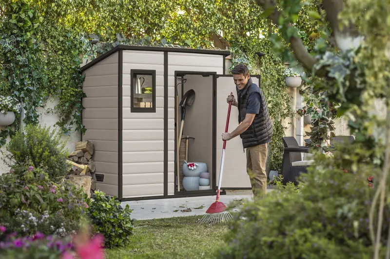 A paneles szellőzőrendszer állandó légáramlást biztosít, megóvva a tárolt tárgyakat a nedvesség káros hatásaitól, ezzel biztosítva a belső tér szárazságát és tisztaságát. A könnyen összeszerelhető konstrukció időjárásálló, így a legszélsőségesebb időjárási körülmények között is megbízható védelmet nyújt a kerti szerszámoknak és eszközöknek.