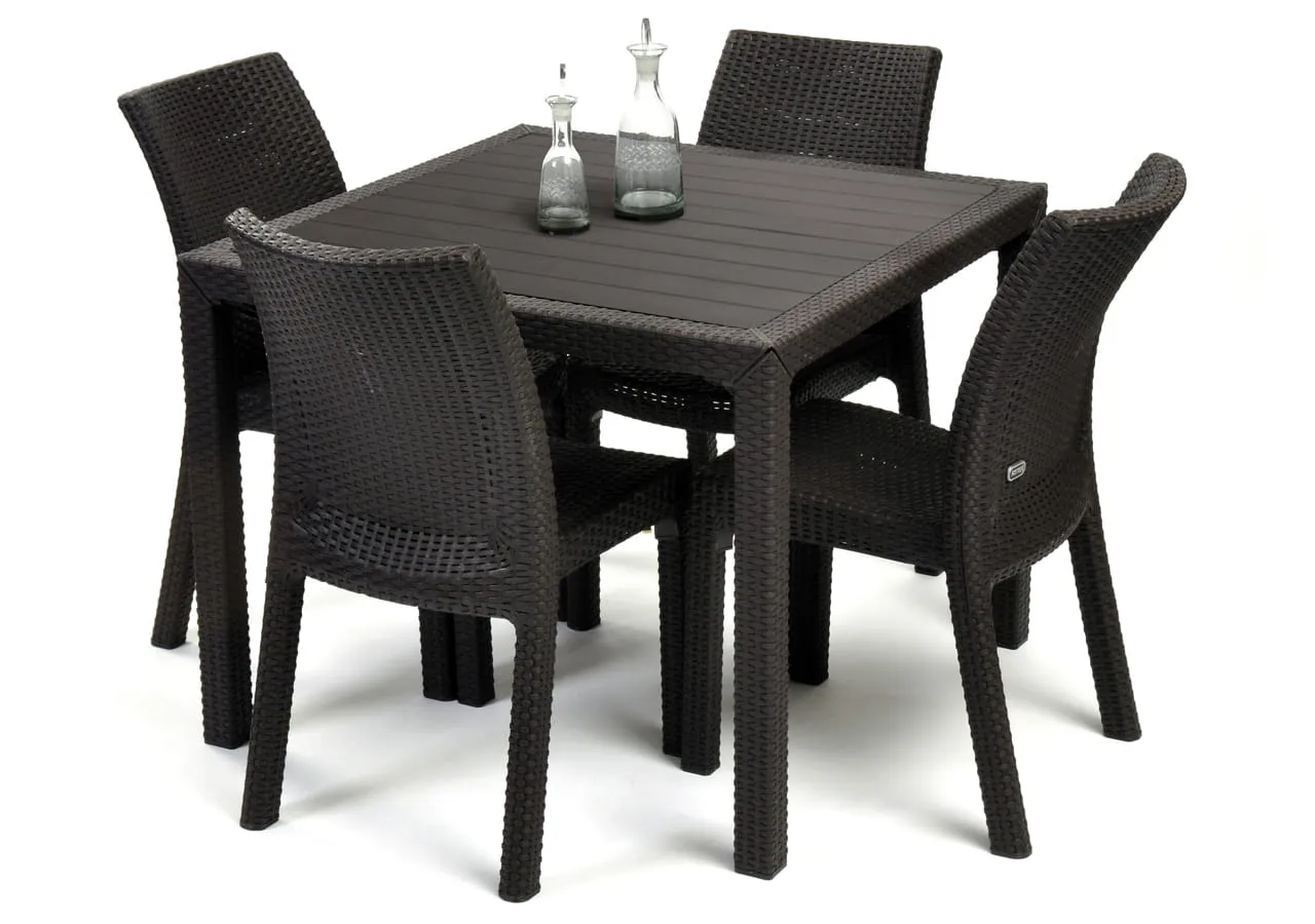A Melody Quartet egy praktikus és elegáns asztal, amelynek a felülete természetes rattan fonást imitál. A bútor kiváló a kisebb terek berendezésére, legyen szó akár az erkélyről, vagy egy kis kertről, de tökéletesen mutat a belső terekben is. Az UV sugaraknak és az időjárás viszontagságainak ellenálló műanyagból készült. Összeszerelése könnyű, tisztítása egyszerű. A termék hagyományos színárnyalatokban kapható.