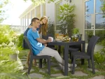 A Melody Quartet egy praktikus és elegáns asztal, amelynek a felülete természetes rattan fonást imitál. A bútor kiváló a kisebb terek berendezésére, legyen szó akár az erkélyről, vagy egy kis kertről, de tökéletesen mutat a belső terekben is. Az UV sugaraknak és az időjárás viszontagságainak ellenálló műanyagból készült. Összeszerelése könnyű, tisztítása egyszerű. A termék hagyományos színárnyalatokban kapható.