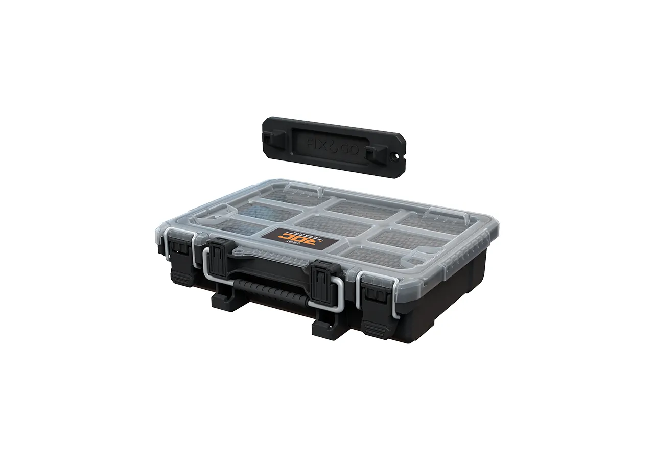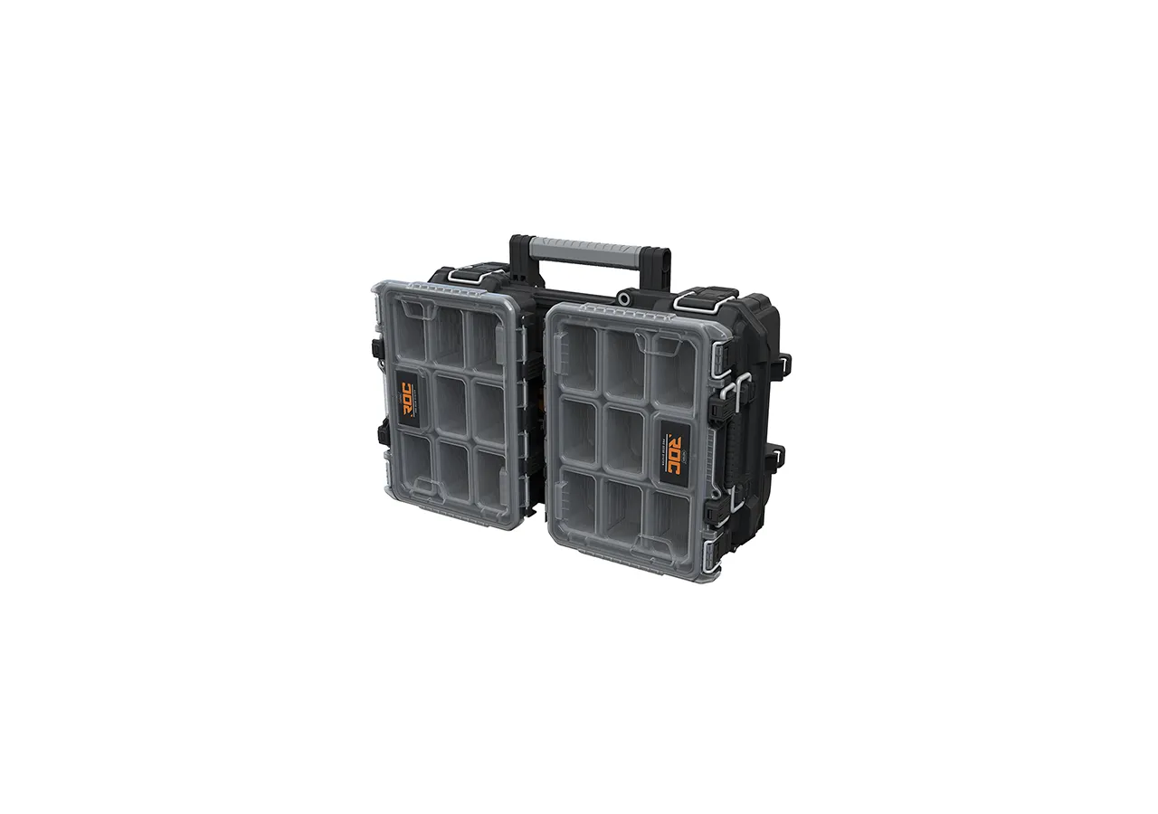 A ROC Pro Gear 2.0 Compact Rendszerező egy nagy teherbírású megoldás a profi felhasználók számára kültéri munkaterületeken és műhelyekben is. Lehetőség van a tárolási lehetőségek bővítésére, ami különösen praktikus amikor úton vagy. A hozzá tartozó Pro Mount konzolos megoldással felakasztható a műhelyben vagy a munkaterületen. Ez a kompakt rendszerező 6 db mély tárolórekesszel és 1 db hármas tárolórekesszel rendelkezik 2 elválasztóval, tartós reteszekkel. A Compact Rendszerező IP65 besorolású a por- és vízállóság érdekében. Biztosítsd a lakatszemmel (lakat nem tartozék), rendszerezd hatékonyan, és vidd magaddal, amire a feladat elvégzéséhez szükséged van. A ROC Pro Gear 2.0 kompakt rendszerező teljes mértékben kompatibilis a ROC Pro Gear 2.0 termékkel és a 71 cm-es gurulós kocsival.