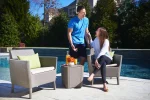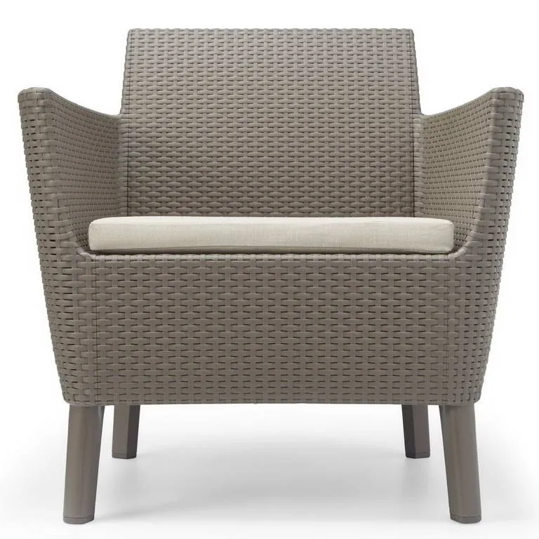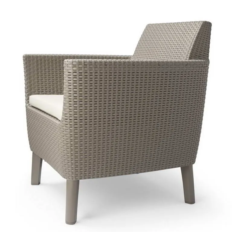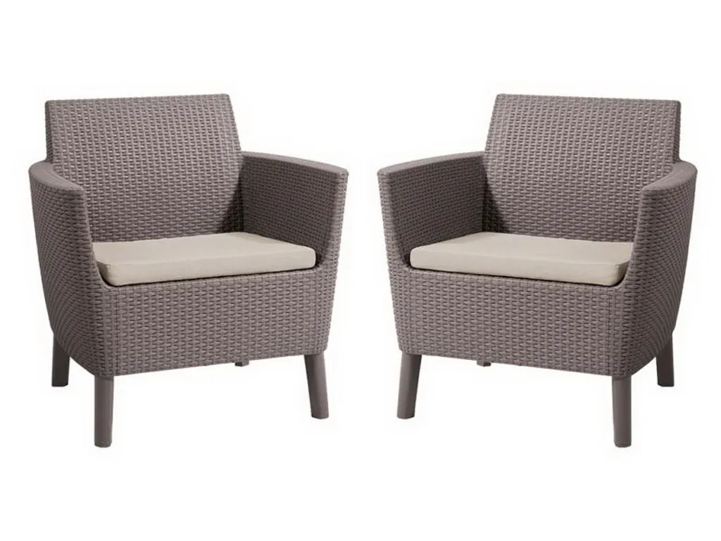 Korszerű, áramvonalas forma, komfortérzet és kiváló minőség. Mindezek a Salemo Duo előnyei. A szett két tágas fotelból áll, melyek a Salemo termékcsalád más bútoraihoz is tökéletesen passzolnak. A természetes nádfonást imitáló textúra növeli a termékek esztétikai értékét. A bútorok könnyen tisztíthatók, összeszerelésük egyszerű, ezenfelül ellenállnak az időjárás viszontagságainak.
