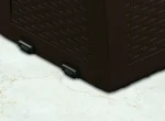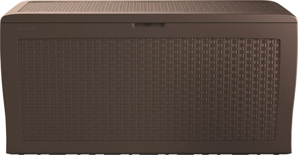 Egy nagyszerű tároló párnák és kerti szerszámok részére. A szerkezete erős és tartós, a fedele 200 kg teherbírású, így két felnőtt súlyát is elbírja. Ellenáll az időjárási körülményeknek és az UV sugárzásnak. A láda műanyagból készült, így nem igényel különösebb karbantartást. A beépített fogantyúk és a görgők megkönnyítik a mozgatását. Az összeszerelése egyszerű és gyors, szerszámok nélkül is csupán 5 percet vesz igéynbe. A fedél kialakítása lehetővé teszi, hogy a láda lakattal is zárható legyen (a lakat nem tartozék). A fonott mintázatú oldalfalak esztétikus hatást keltenek, a tároló láda minden kertben szép látványt nyújt.