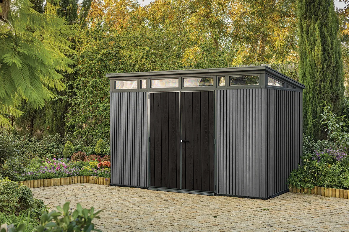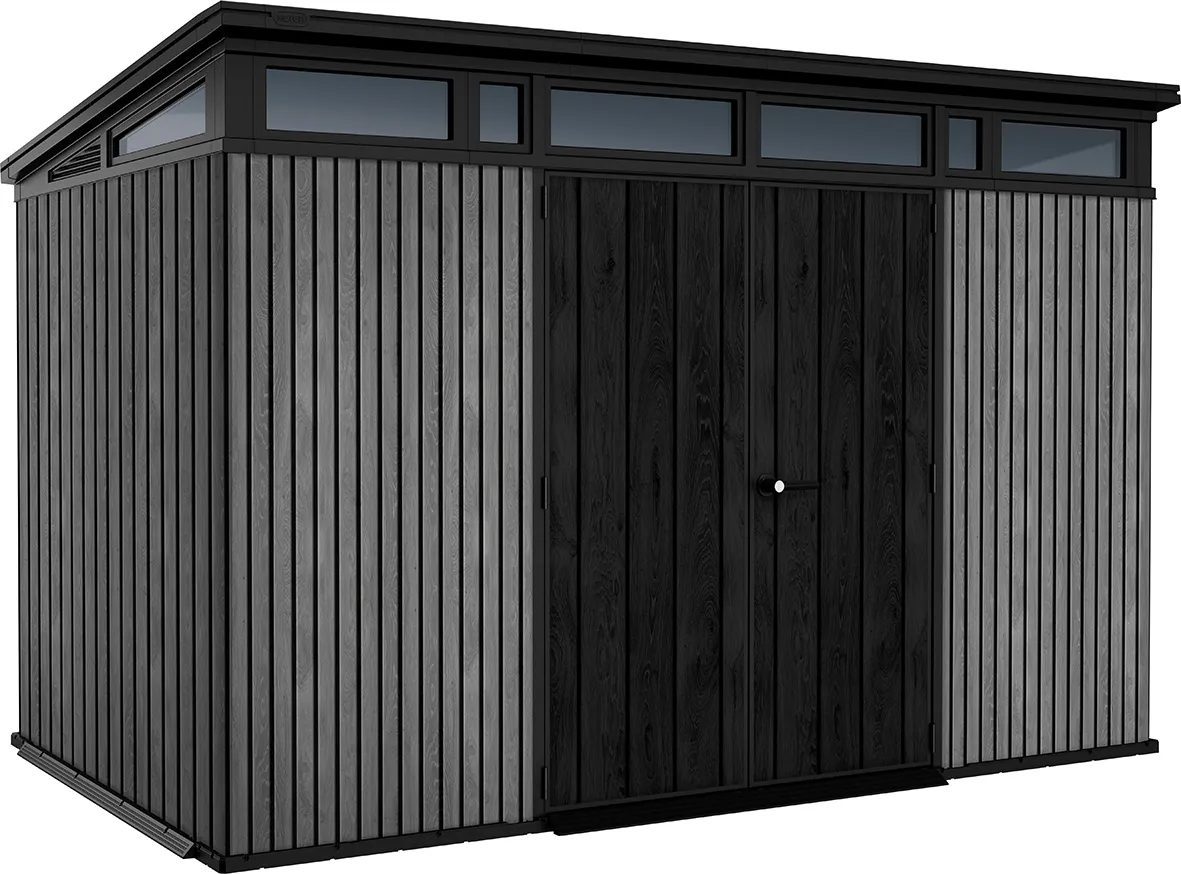 A SIGNATURE PENTHOUSE 11X7 a modern dizájn és a praktikus tárolási megoldások tökéletes kombinációja. Hozz létre egy stílusos és funkcionális tárolót a kertedben ezzel az innovatív, időjárásálló kerti házzal!