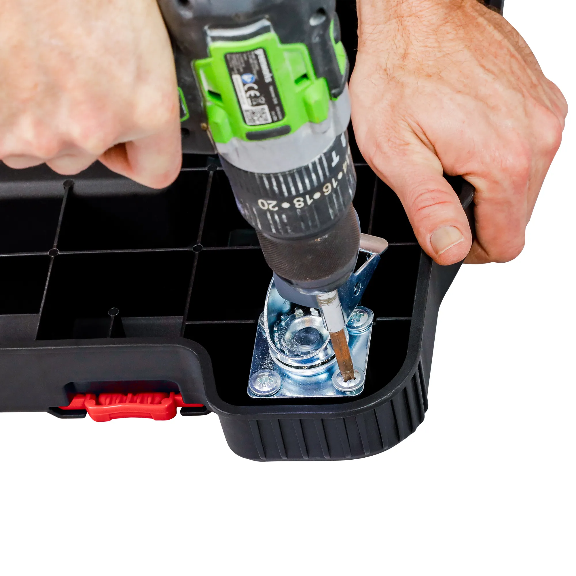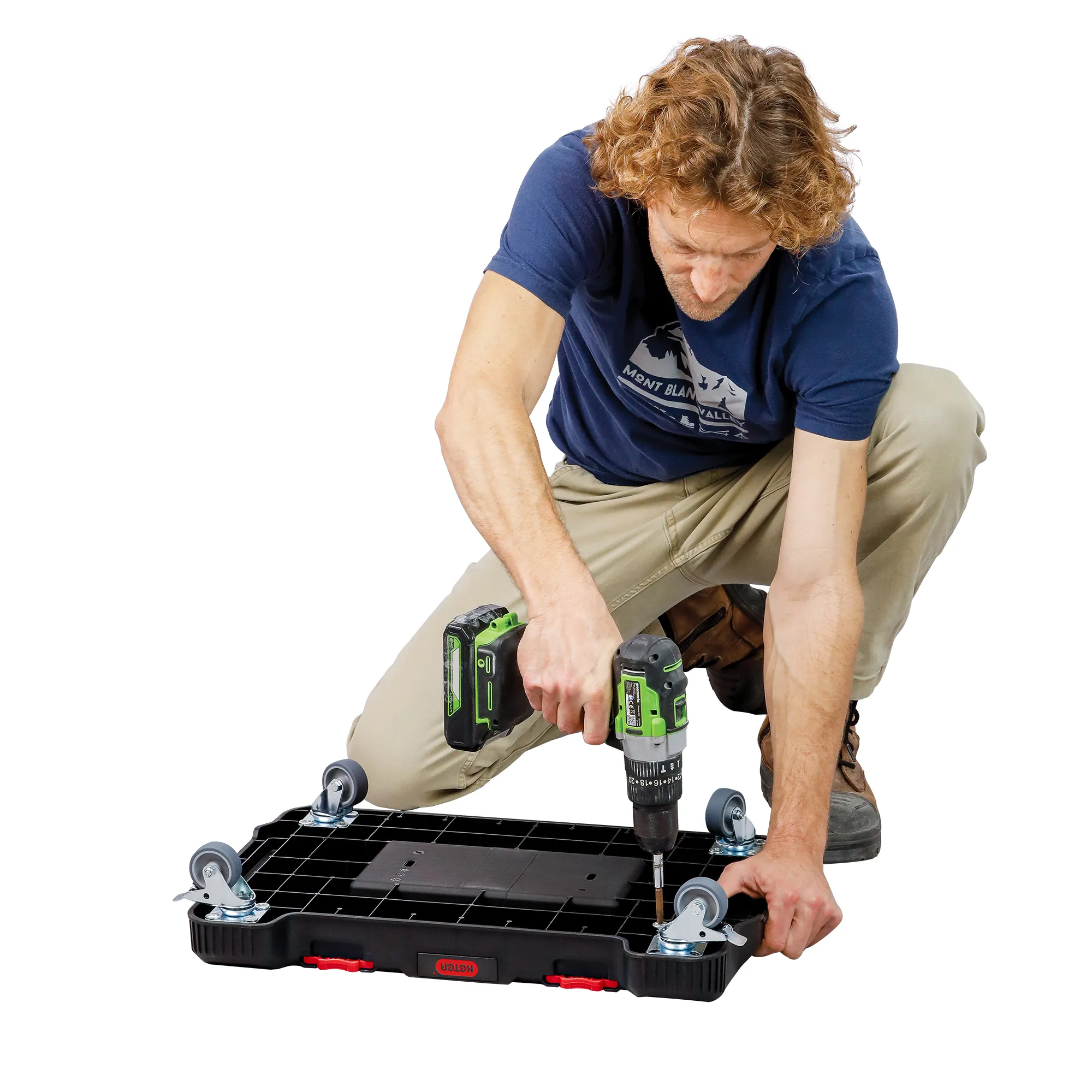 Bemutatkozik a 2 az 1-ben beépített szerszámtálcás kocsi – egy praktikus megoldás a barkácsolóknak! Padlószintű munkaállomásként tervezték, tökéletes otthoni vízvezeték-szereléshez, autókarbantartáshoz és egyéb gyakorlati feladatokhoz, a süllyesztett szerszámtálcának köszönhetően a szerszámok kézközelben maradnak. Ráadásul kényelmes módja annak, hogy a „Stack & Roll” szerszámosládákat a műhelyben mozgasd, 360 fokos forgatással és rögzíthető görgőkkel a könnyű mozgathatóság érdekében. Végezz többet ezzel a sokoldalú, multifunkcionális kocsival!