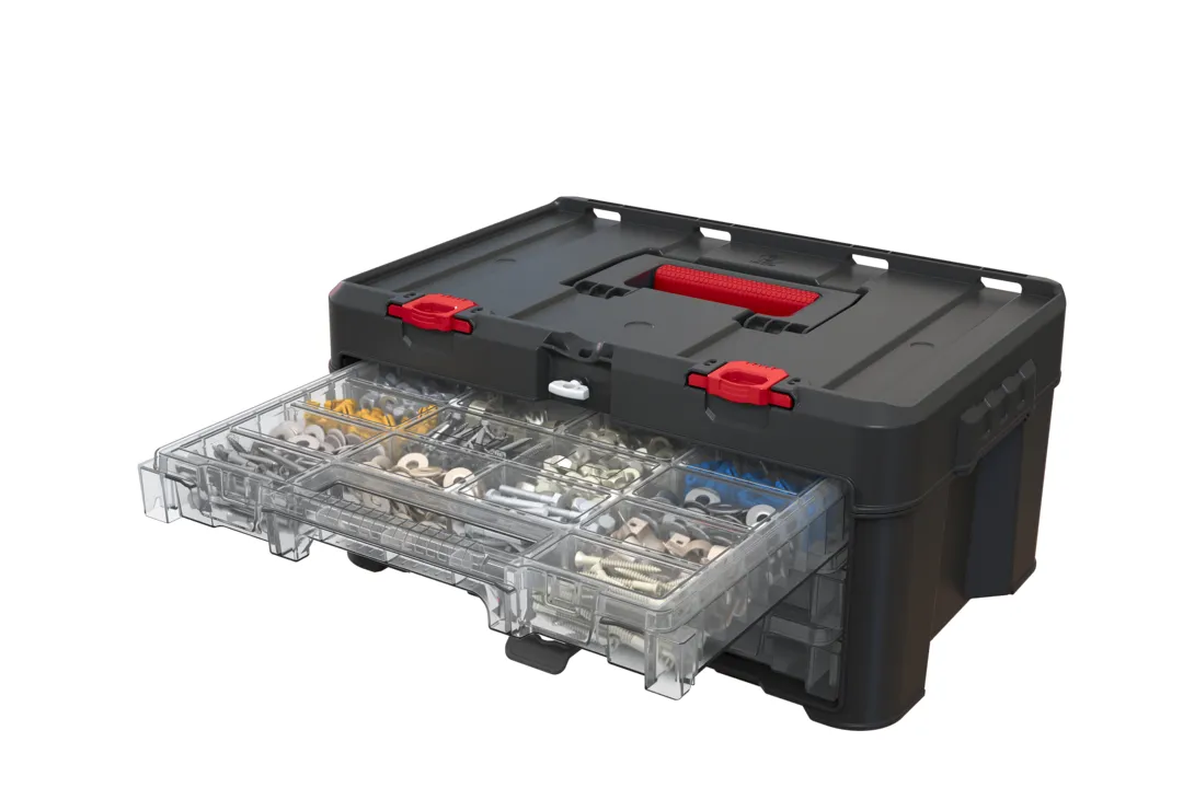 A 3 fiókos reteszelhető rendszerező tökéletes tárolási megoldást kínál minden hobbi-barkácsoló és profi számára, aki szeretné biztonságban, egymástól elkülönítve tárolni a kisebb, vagy közepes méretű szerszámait. Fiókjai teljesen kivehetők, így nincs szükség az egész rendszerezőt magaddal vinni egy-egy munkához. Különböző méretűek a szerszámaid? Nem probléma! Kivehető és mozgatható elválasztóknak köszönhetően a legideálisabb elrendezés alakítható ki. Kis súlya ellenére kiváló minőségű műanyagból készül, aminek köszönhetően rendkívül tartós és megóvja a szerszámokat a sérüléstől. További előnye a terméknek, hogy a Stack’N’Roll termékcsalád többi tagjával kompatibilis, a termékeken található reteszek segítségével egymáshoz rögzíthetők.