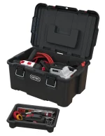 A Stack’N’Roll szerszámosláda segítségével mindg kéznél lesznek a szükséges szerszámok! Ez a tartós és könnyű konstrukció kényelmes fogantyúval kiegészülve rendkívül hasznos a ház, vagy a műhely körül. A tetejét felnyitva egy tágas rekeszben tárolhatók a nagyobb szerszámok, melyek biztonságos tárolásáról erős kapcsos zárak gondoskodnak. A termékcsalád többi termékével kompatibilis, reteszekkel összekapcsolva együtt is könnyen szállíthatók.