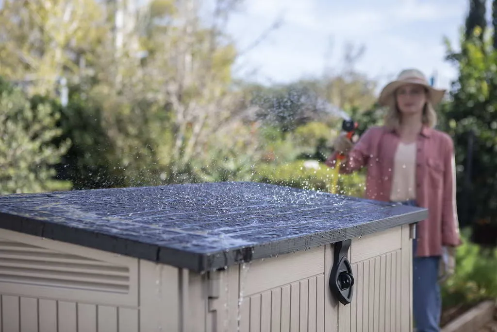A Store It Out Midi kerti tárolót egyszerű és elegáns mintázat, univerzális színválaszték és természetes fára emlékeztető felület jellemzi. Opcionálisan polcok is beszerelhetők, melyek tovább növelik a termék használati tulajdonságait. A tároló minden olyan helyen beválik, ahol nélkülözhetetlen a kerti tartozékok és háztartási tárgyak tárolása. Az erős szerkezet megvédi a tárolóban tárolt tárgyakat a nedvességtől, a magas minőségű alapanyagok pedig hosszú élettartamot garantálnak.