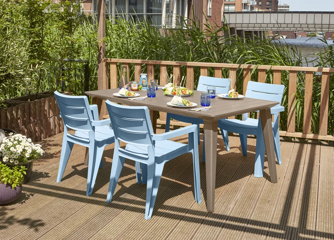 A funkcionális Lima 160 asztal fő előnye az egyszerű, univerzális forma, melynek köszönhetően bármilyen stílusú térbe passzol, legyen az akár hagyományos, vagy modern kialakítású. A széles asztallap igazán hasznos tud lenni a nagy, családi vagy ismerősökkel tartott kerti összejöveteleken. Az asztal összeszerelése és tisztántartása rendkívül egyszerű, ellenáll az időjárás viszontagságainak.