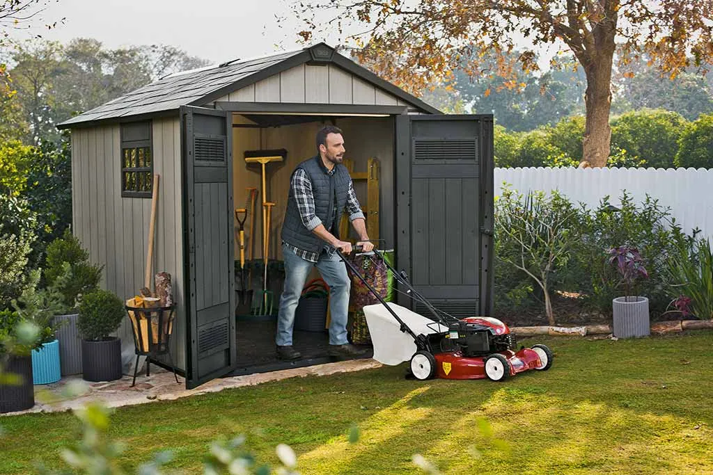 - Tágas belső tér: Elég helyet biztosít a kerti szerszámok, fűnyíró és létra tárolására is