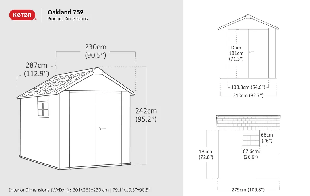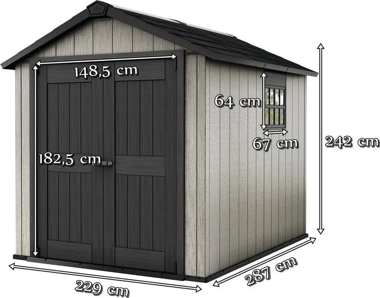 Az OAKLAND 759 egy praktikus és rendkívül tartós szerszámos ház, amely minden kerti tárolási igényt kielégít. Egyedi gyanta kompozitból készült dupla falú panelei rendkívül ellenállóak, így megvédik a tárolt tárgyakat a kedvezőtlen időjárási viszonyoktól. A nagy belső térben kényelmesen elférnek a kerti szerszámok, eszközök, fűnyíró és akár egy létra is, így mindent rendezetten és könnyen hozzáférhetően tárolhatsz.