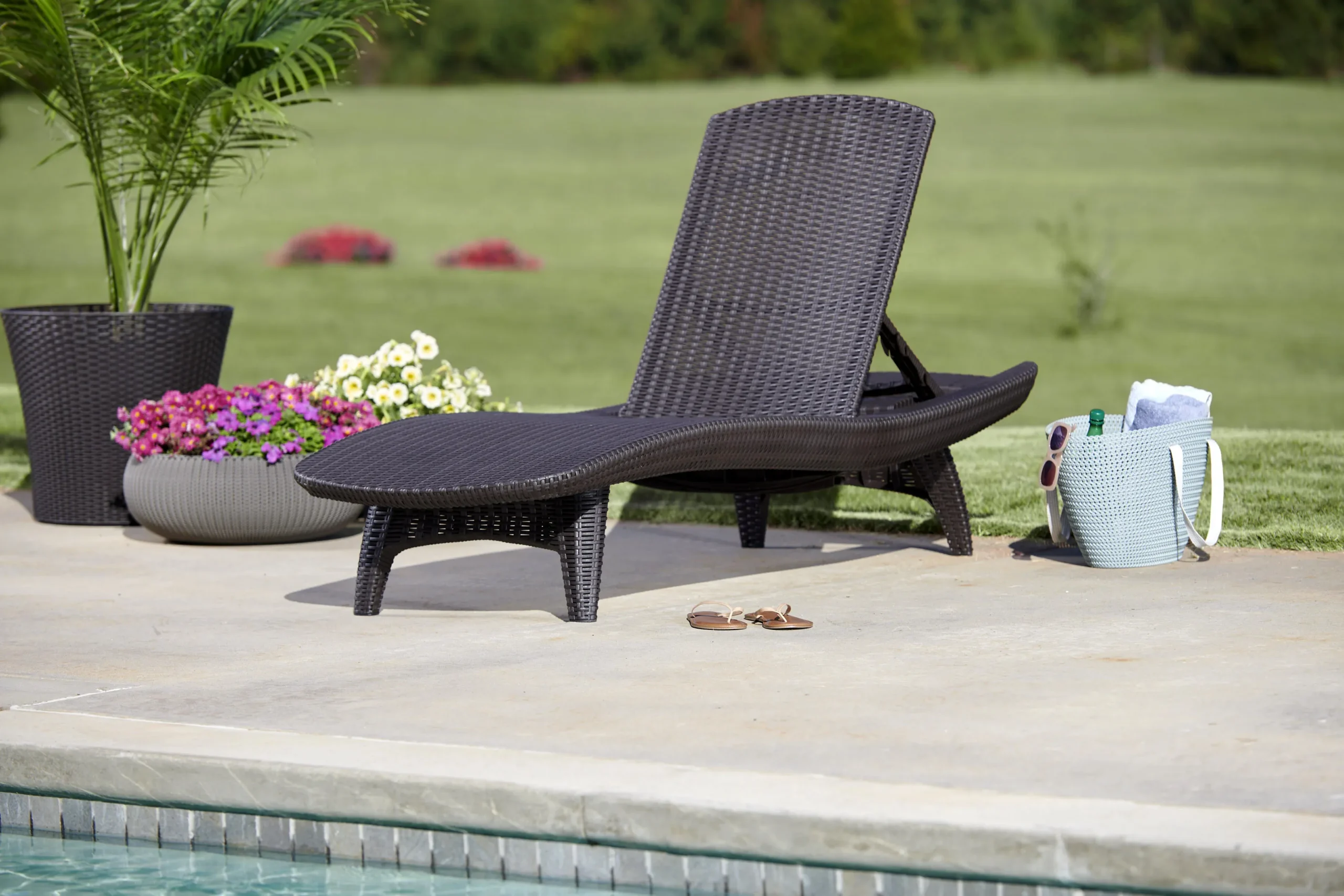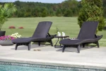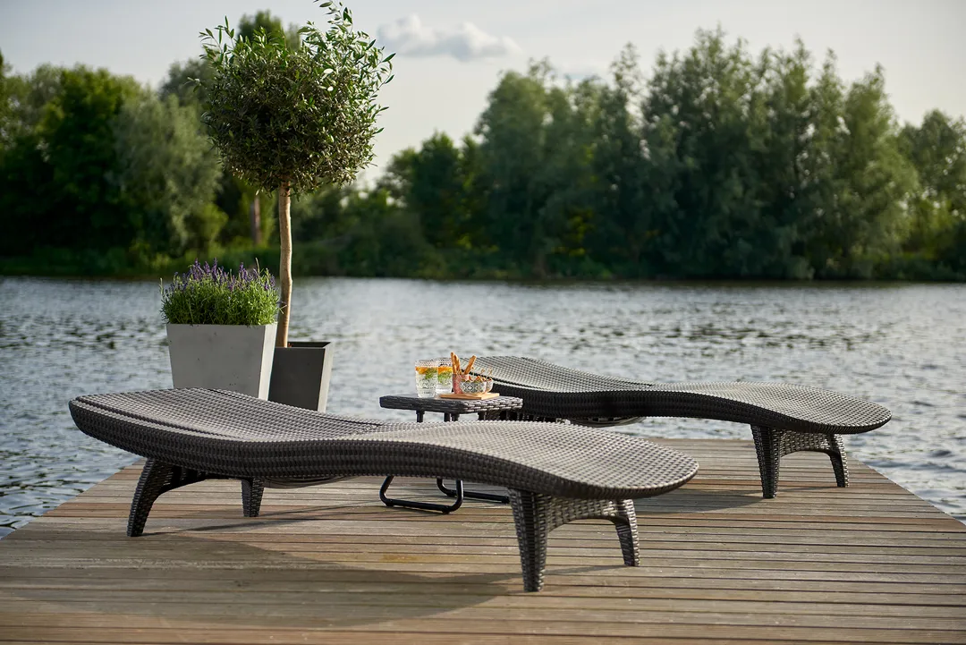 Elegáns napozóágy garnitúra két stílusos nyugággyal és egy kompakt kisasztallal, amelyre ráhelyezheti a frissítő italokat vagy akár az olvasnivalót is. A garnitúrát egyedi mintázat és forma, valamint stabil szerkezet jellemzi. A nyugágyak kényelmes, dönthető háttámlái maximális kényelmet biztosítanak a kertben. A termék fontos jellemzője, hogy ellenáll az időjárás viszontagságainak és az UV sugárzásnak. Könnyű tisztán tartani.