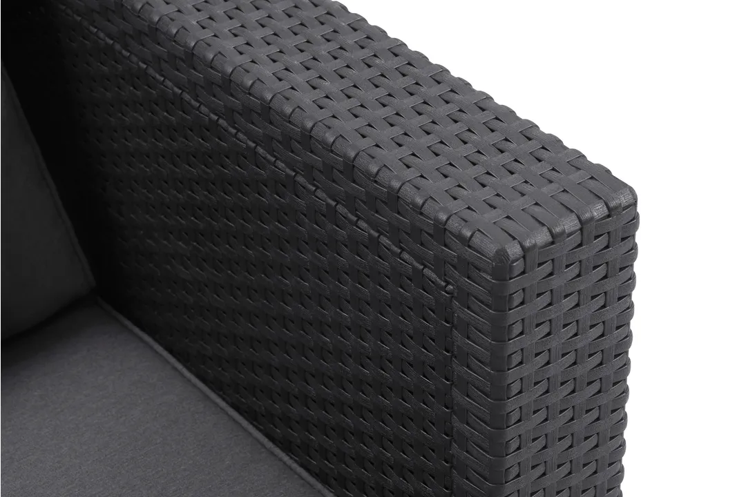 A Provence termékcsalád sarokkanapéjának természetes külsejét a nádfonásra emlékeztető anyag biztosítja. A felület mintázata ellenáll a nedvességnek és az UV sugaraknak, így a bútor rendkívül tartós. A Provence kanapé tökéletesen mutat minden kertben és teraszon.