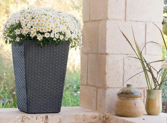 A minden részletében precízen és aprólékosan kivitelezett kicsi, négyszögletes Small Rattan Planter virágtartó dizájnja mindenki tetszését elnyeri. Mintázata fonott rattanra emlékeztet, ezért kiválóan beleillik a természetes környezetbe. A modern és stabil szerkezet hosszú évekre garantálja a tartósságot, az UV hatásának ellenálló kimagasló minőségű műanyag révén a színek árnyalata nem változik meg. A virágtartó tökéletes dísze lehet a tersznak, vagy akár a lugasnak is.