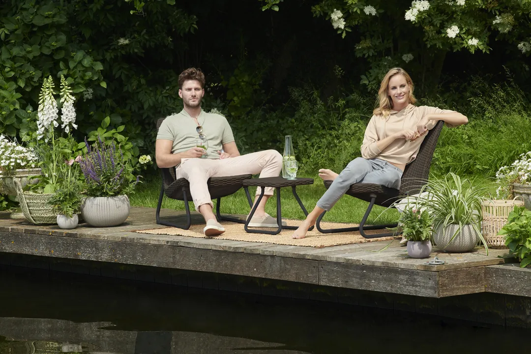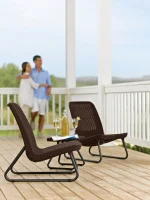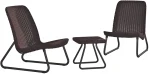 A Rio Patio bútor szett egyesíti a modern stílust és a kényelmet. A szett két alacsony széket és egy négyszögletes asztalt tartalmaz, amelyek a kis méretüknek köszönhetően kiválóak kis terek berendezésére, legyen szó akár az erkélyről, vagy egy kisebb kertről. A könnyen tisztítható bútor szett tartós és ellenáll az időjárás viszontagságainak, illetve az UV sugaraknak is. Meleg, hagyományos színárnyalatokban kapható.