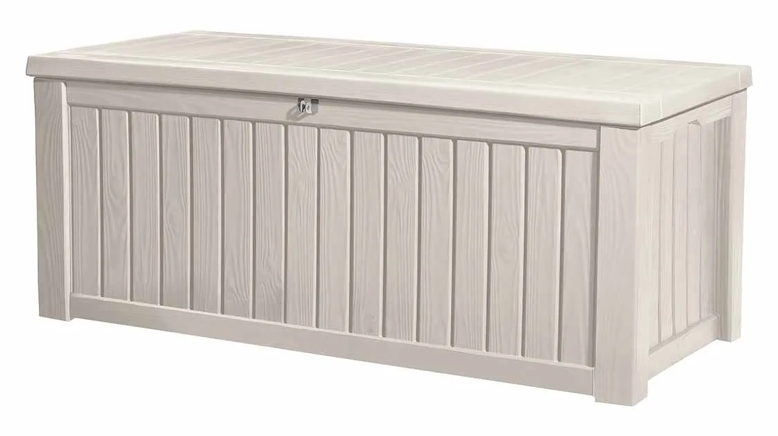 A stílusos Rockwood kerti tároló előnye a nagy kapacitása és az egyszerű összeszerelése. Ezen előnyöknek köszönhetően olyan tárgyak találhatnak helyet maguknak a tárolóban, mint a kerti párnák, ágytakarók, pokrócok, vagy a szükséges kerti szerszámok. A fedél nyitását megkönnyítő mechanizmus a termék további előnyét képezi. Szilárdságának köszönhetően a tároló ülőhelyként is szolgálhat 2 személy számára.