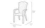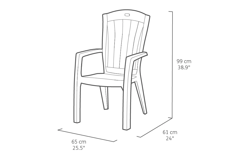 A Santorini egy széles kartámasszal felszerelt, nagyon kényelmes kerti fotel. A terméket könnyű, de egyúttal stabil szerkezet és kiváló tartósság jellemzi. Anyaga ellenáll az időjárás viszontagságainak és az UV-sugaraknak. A széket nagyon könnyű tisztítani, ehhez egyedül egy nedves törlőkendőre van szükség.