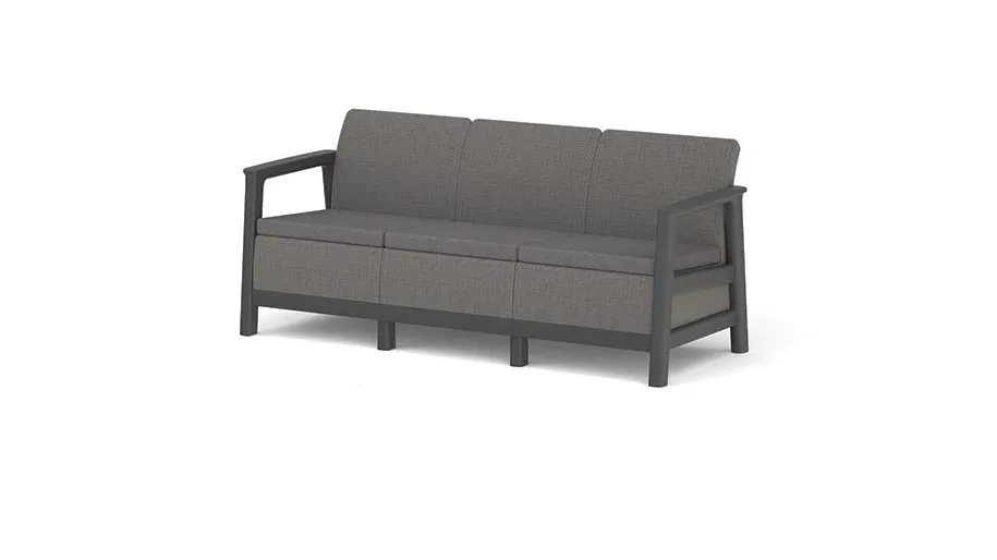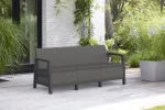 Az árnyalatok kombinációja hangsúlyozza a kanapé modern, mégis sokoldalú dizájnját, amely számos kültéri teret kiegészít.